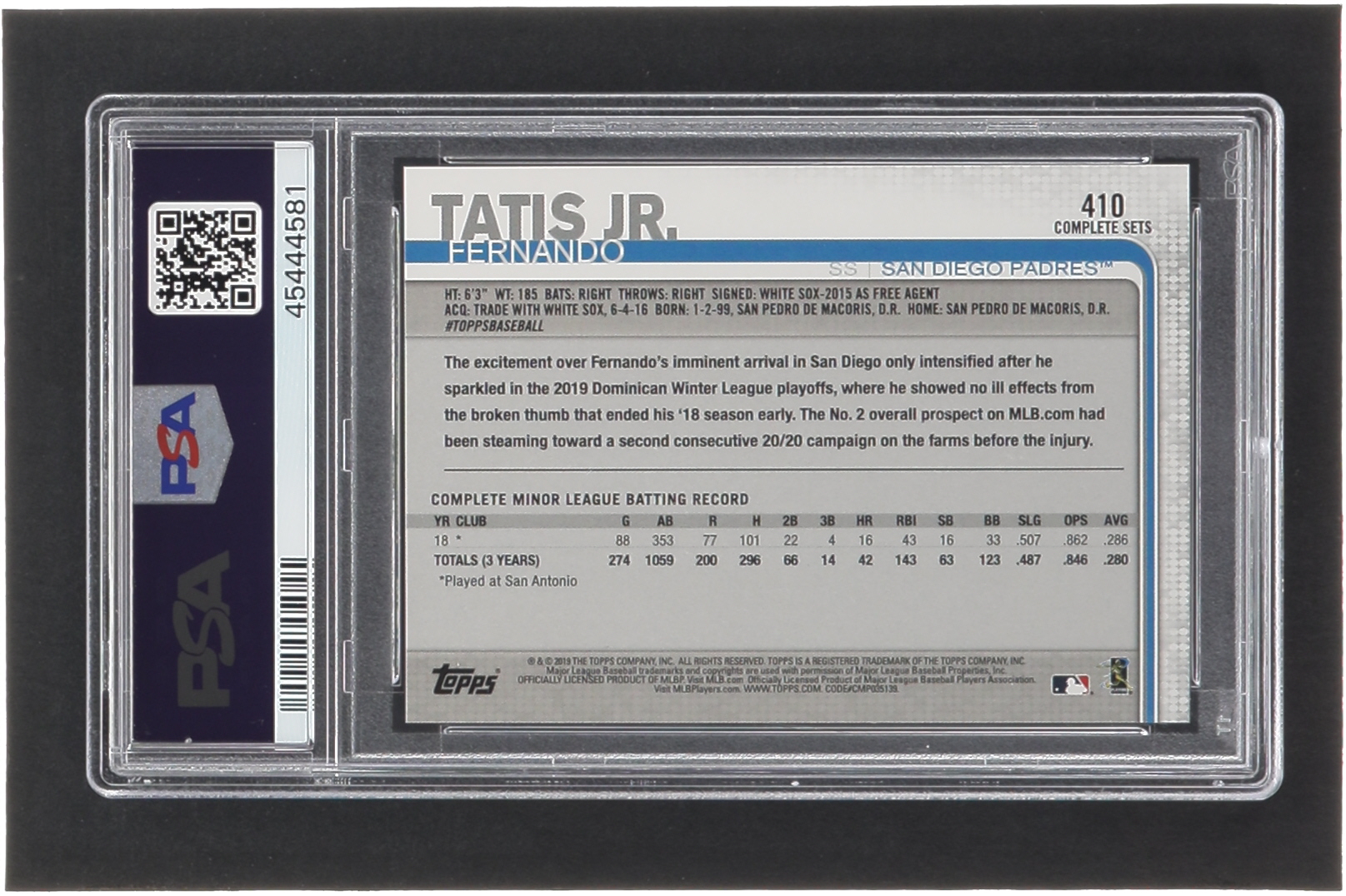 Fernando Tatis Jr. 2019 Topps Base Set Photo Variations #410 RC (PSA 10)