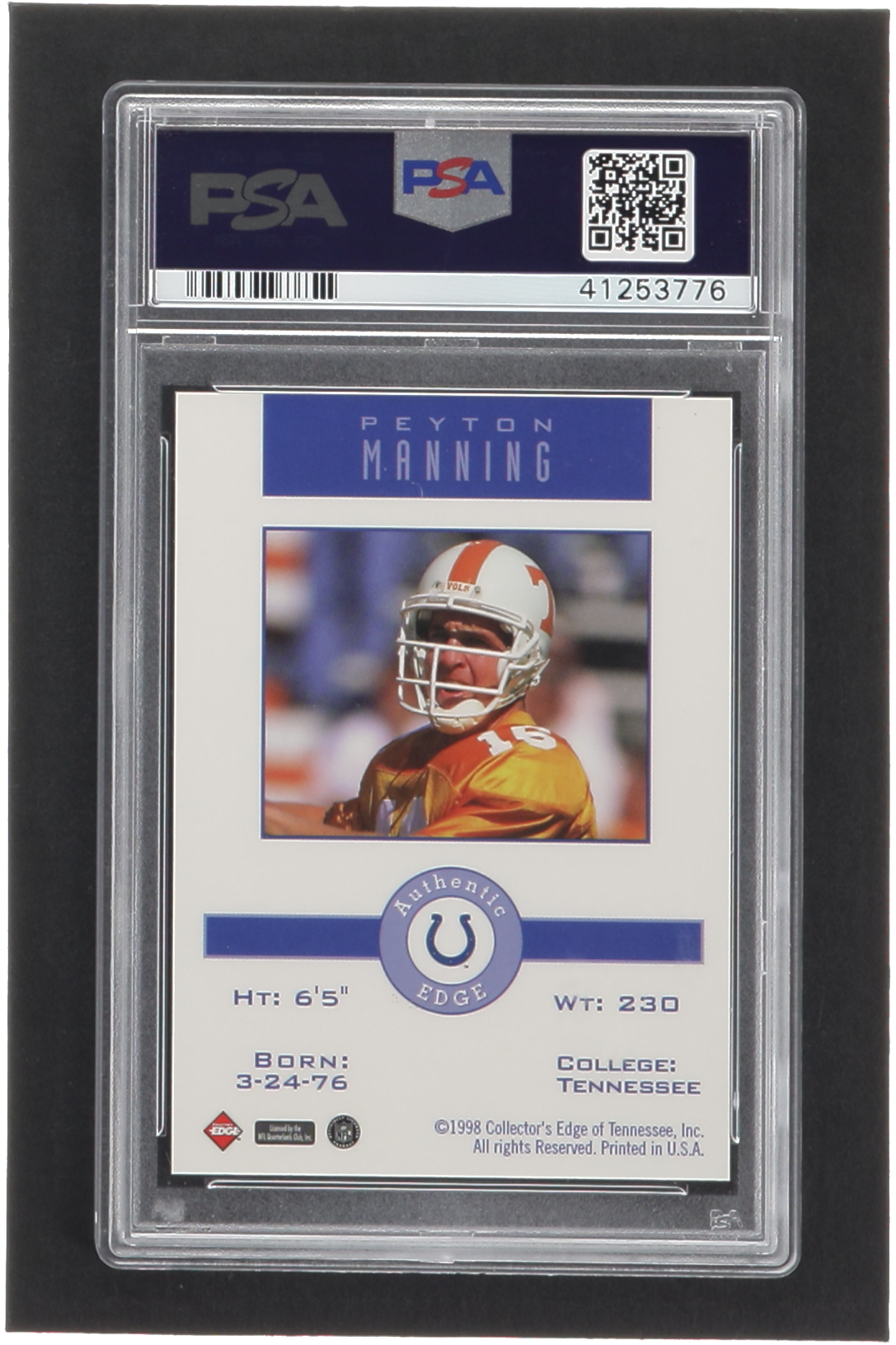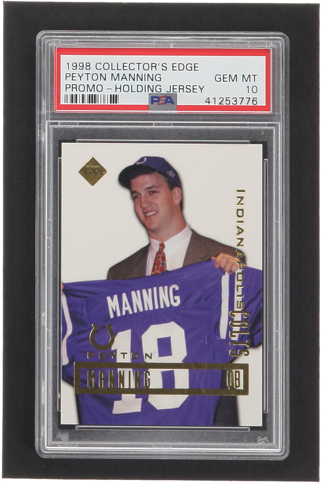 Peyton Manning 1998 Collector's Edge Peyton Manning Promos #NNO RC / Holding Jersey (PSA 10)