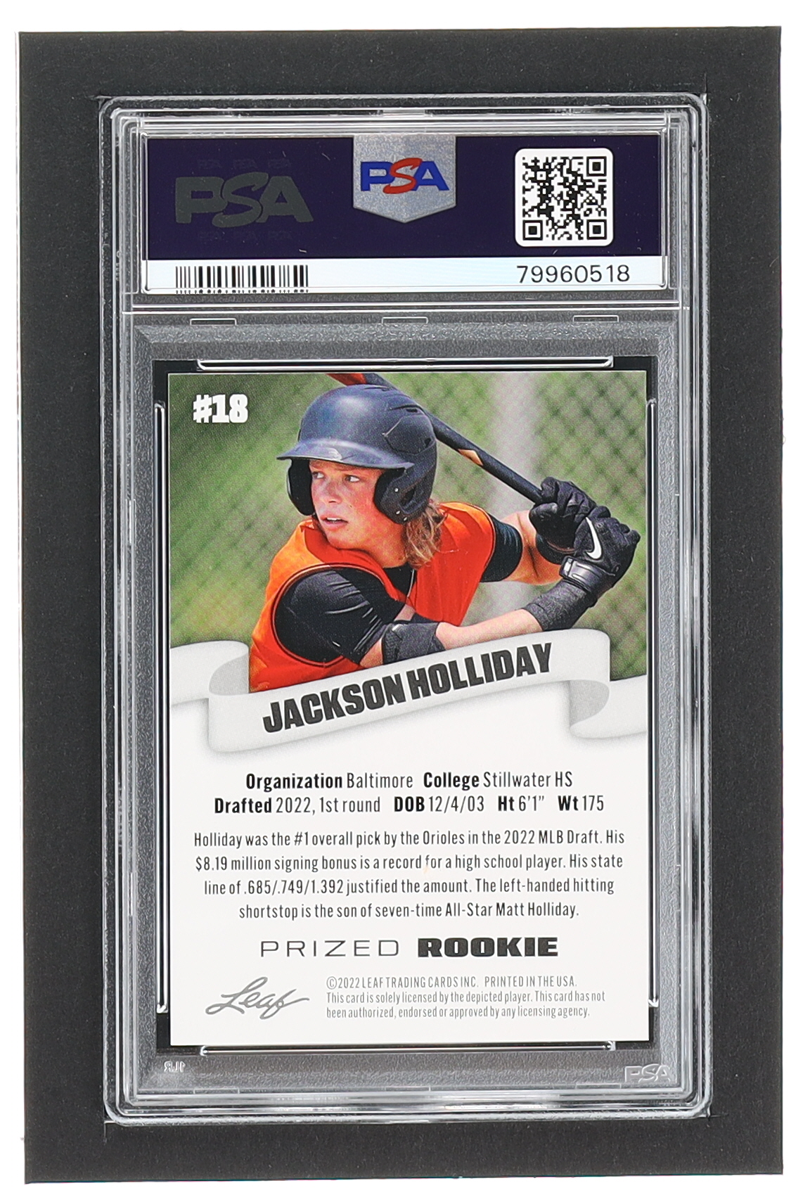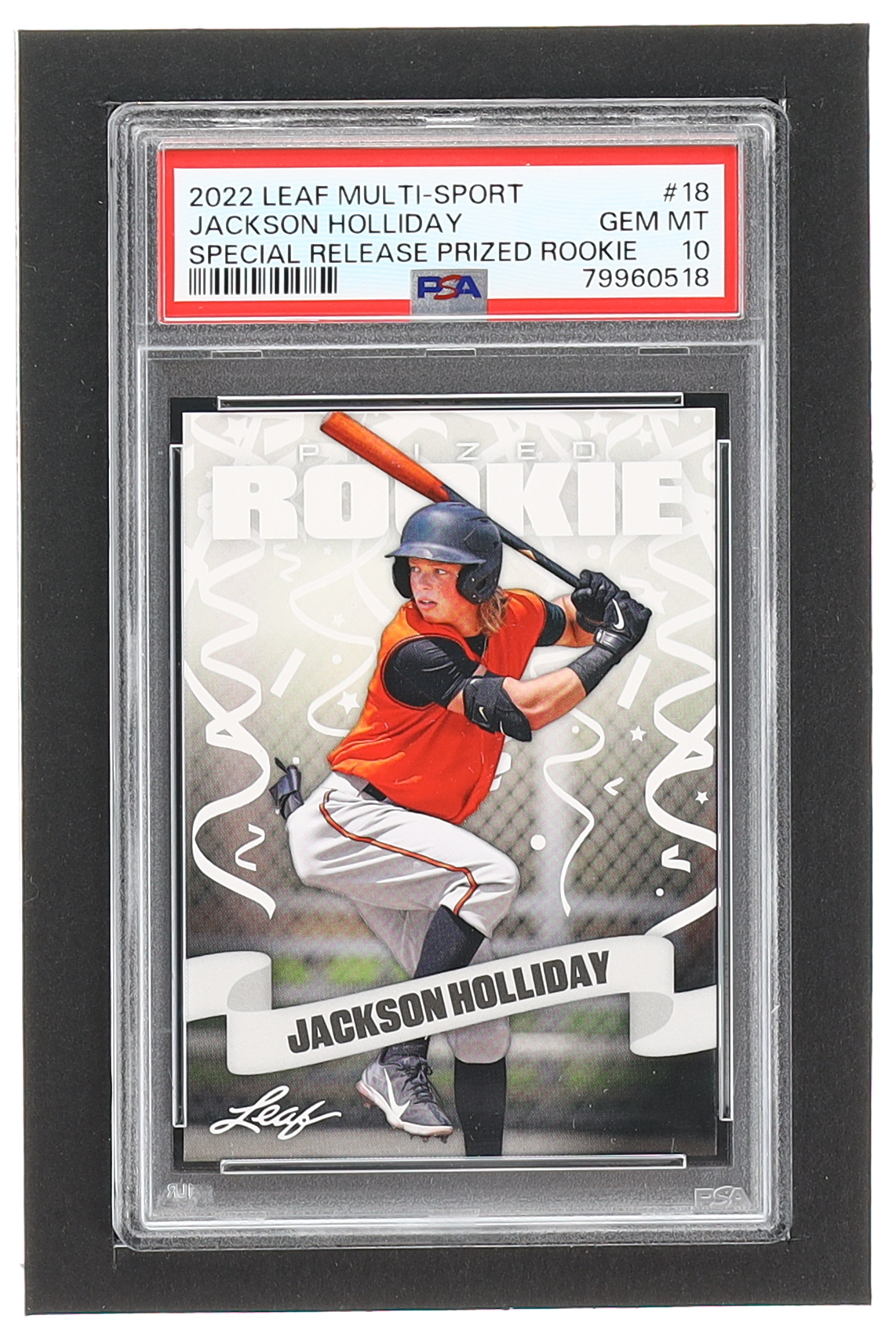 Jackson Holliday 2022 Leaf Special Release Prized Rookie #18 RC (PSA 10)