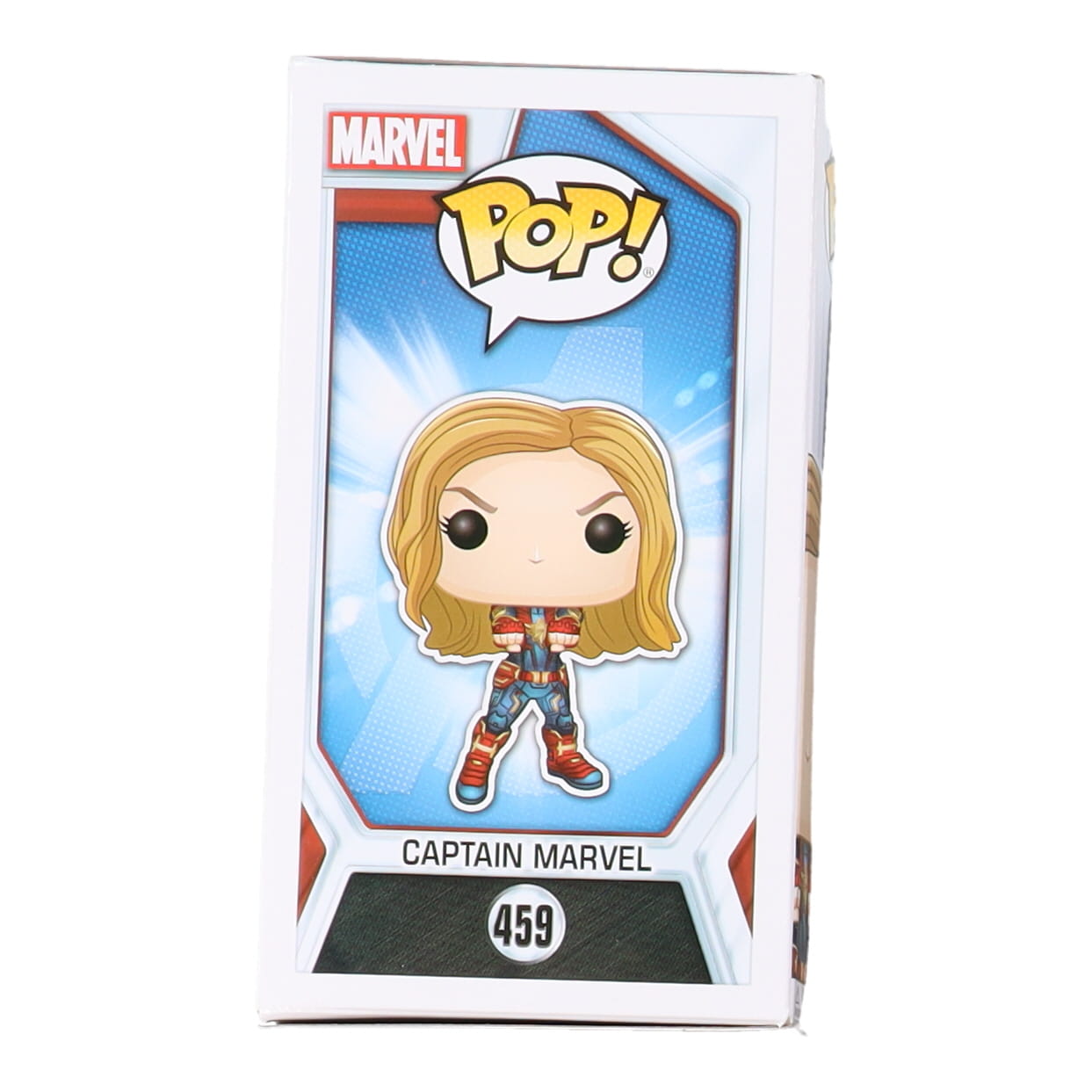 Funko Pop! figure measures approximately 4" tall and has been hand-signed on the packaging by Brie Larson (Captain Marvel / Carol Danvers).