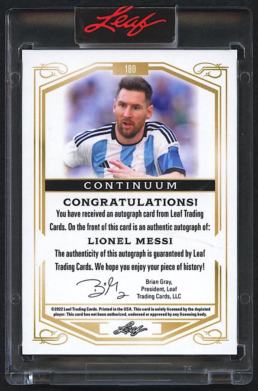 Lionel Messi 2022 Leaf Continuum Autograph #180 #056/184