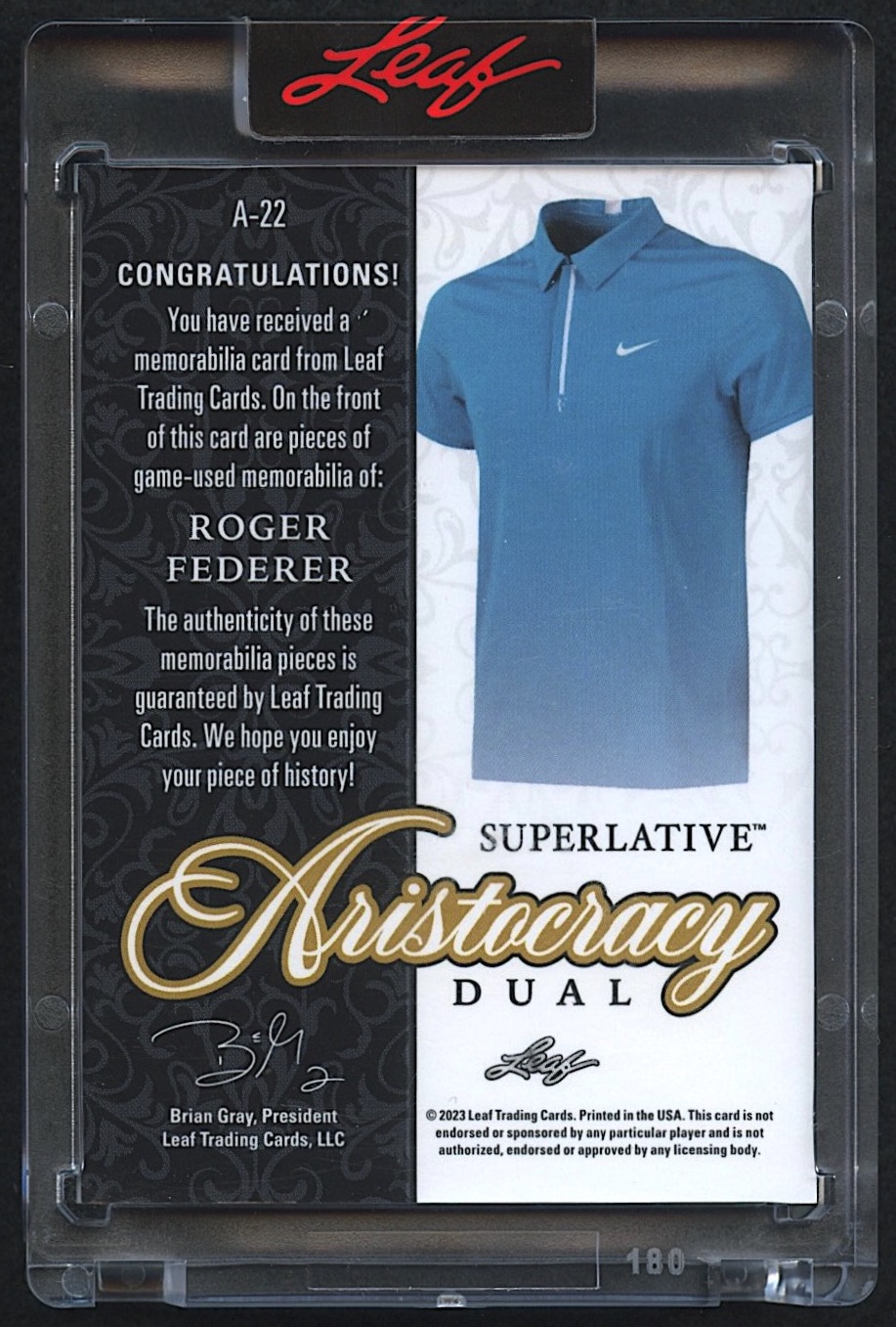 Roger Federer 2023 Leaf Superlative Aristocracy Dual Match Worn Shirt #A-22 #2/2