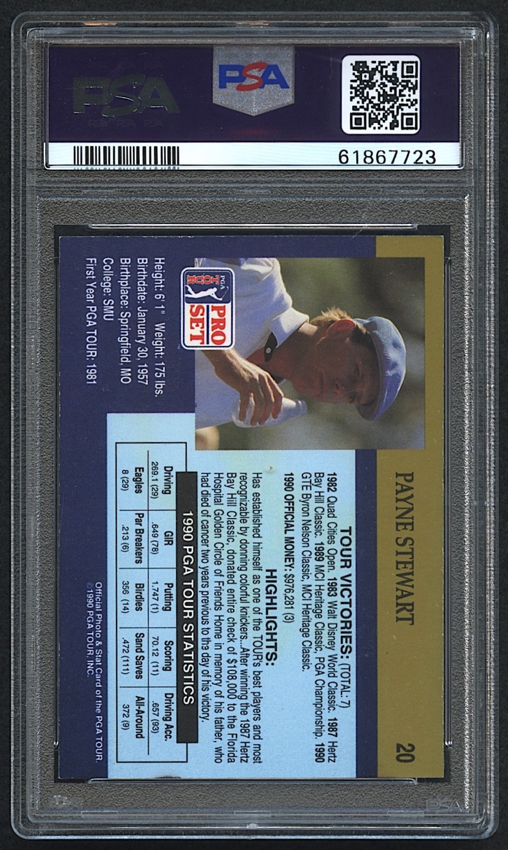 Payne Stewart Signed 1990 PGA Tour Pro Set #20 (PSA Encapsulated)