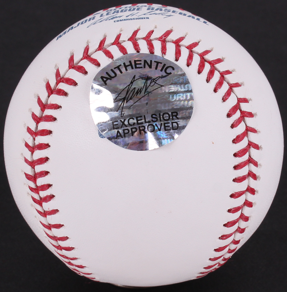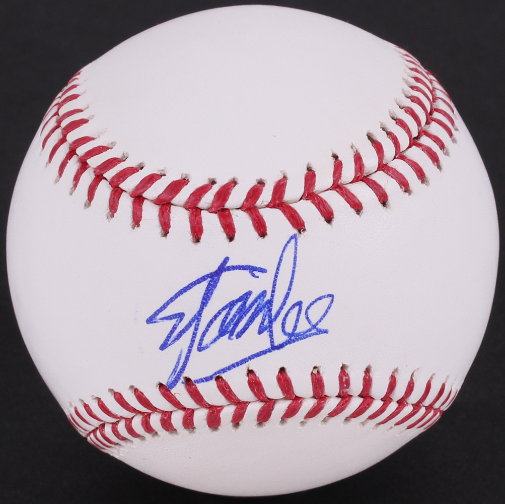 Rawlings Official Major League Baseball is hand-signed on the sweet spot in blue ink pen by Stan Lee.