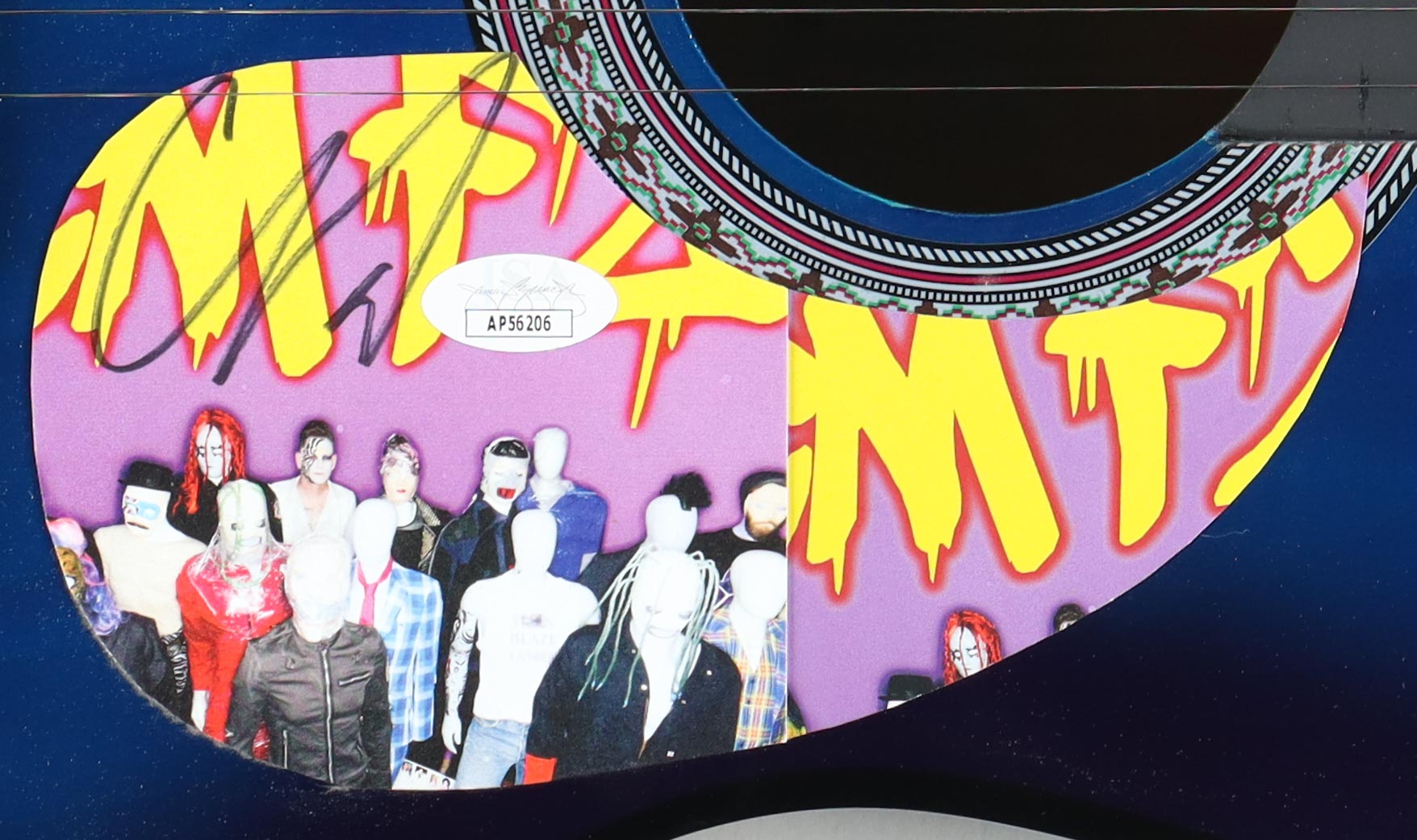 Guitar measures approximately 38" in length. Hand-signed on a CD cover that has been repurposed as a pick-guard by Corey Taylor