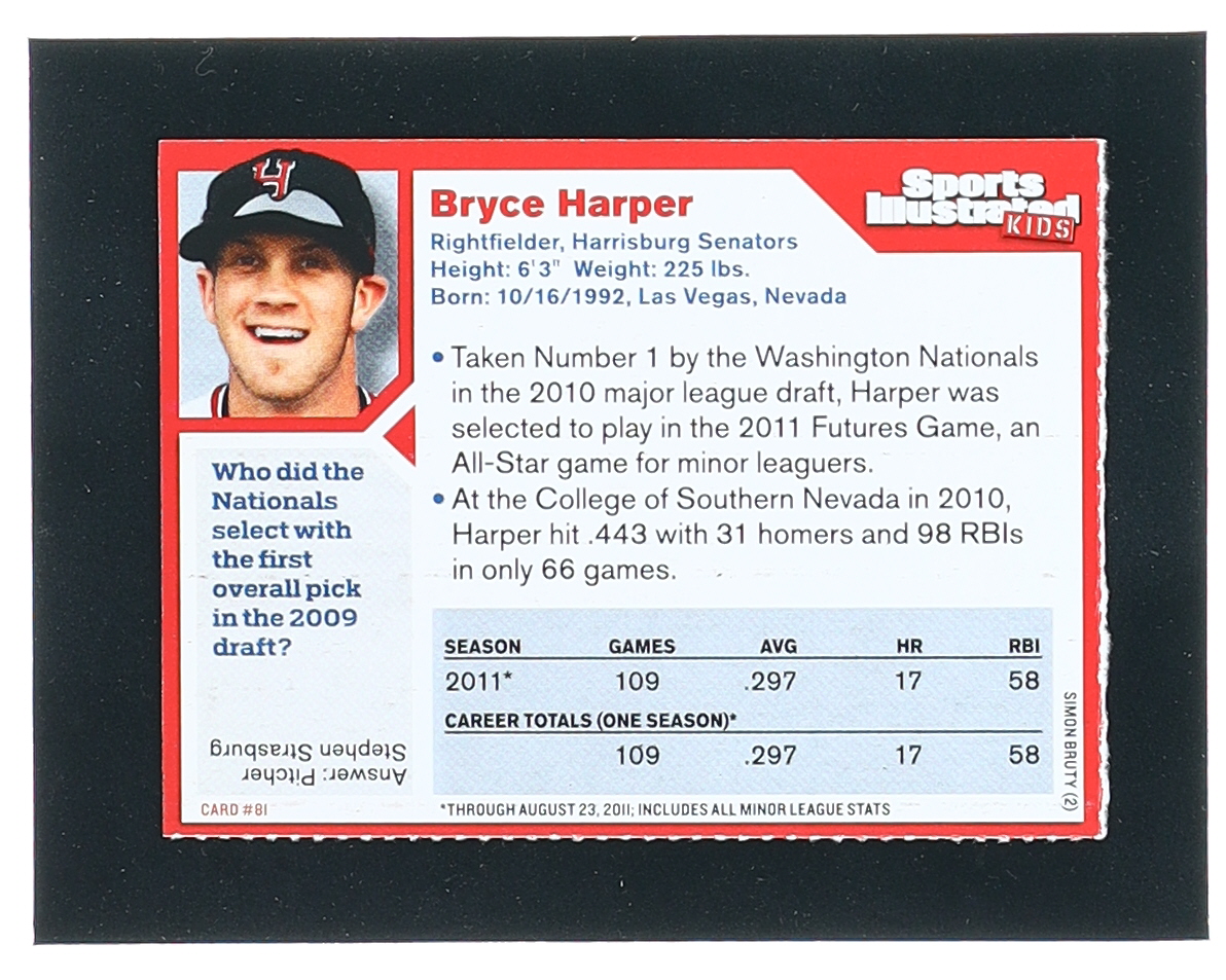 Bryce Harper 2011 Sports Illustrated for Kids #81 BB RC