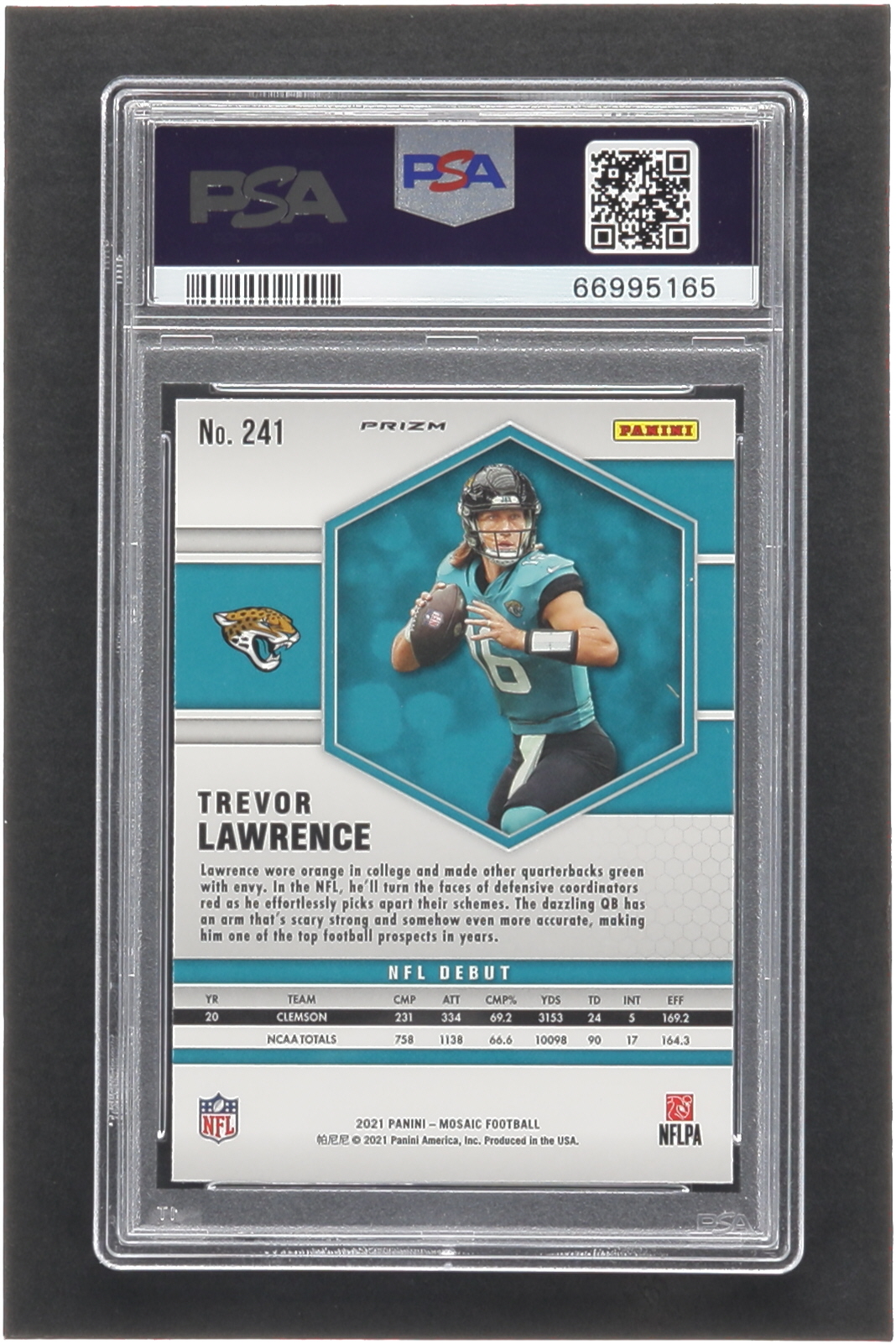 Trevor Lawrence 2021 Panini Mosaic Mosaic Reactive Blue #241 DEB RC (PSA 9)