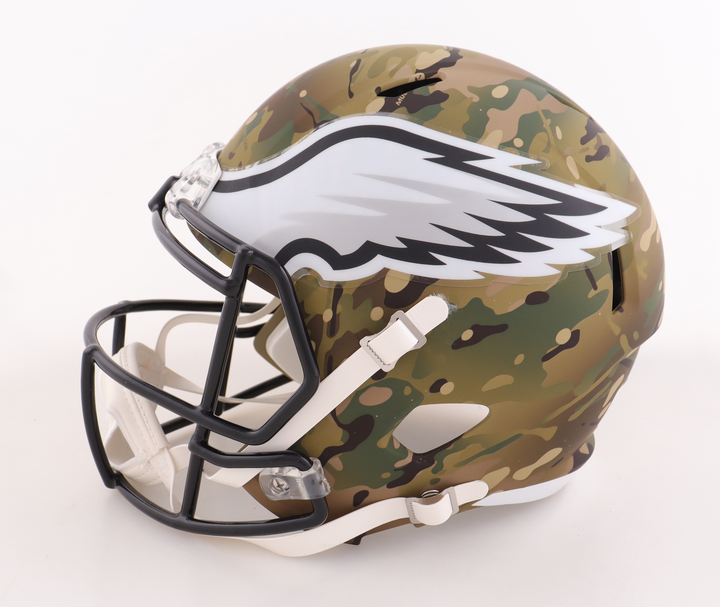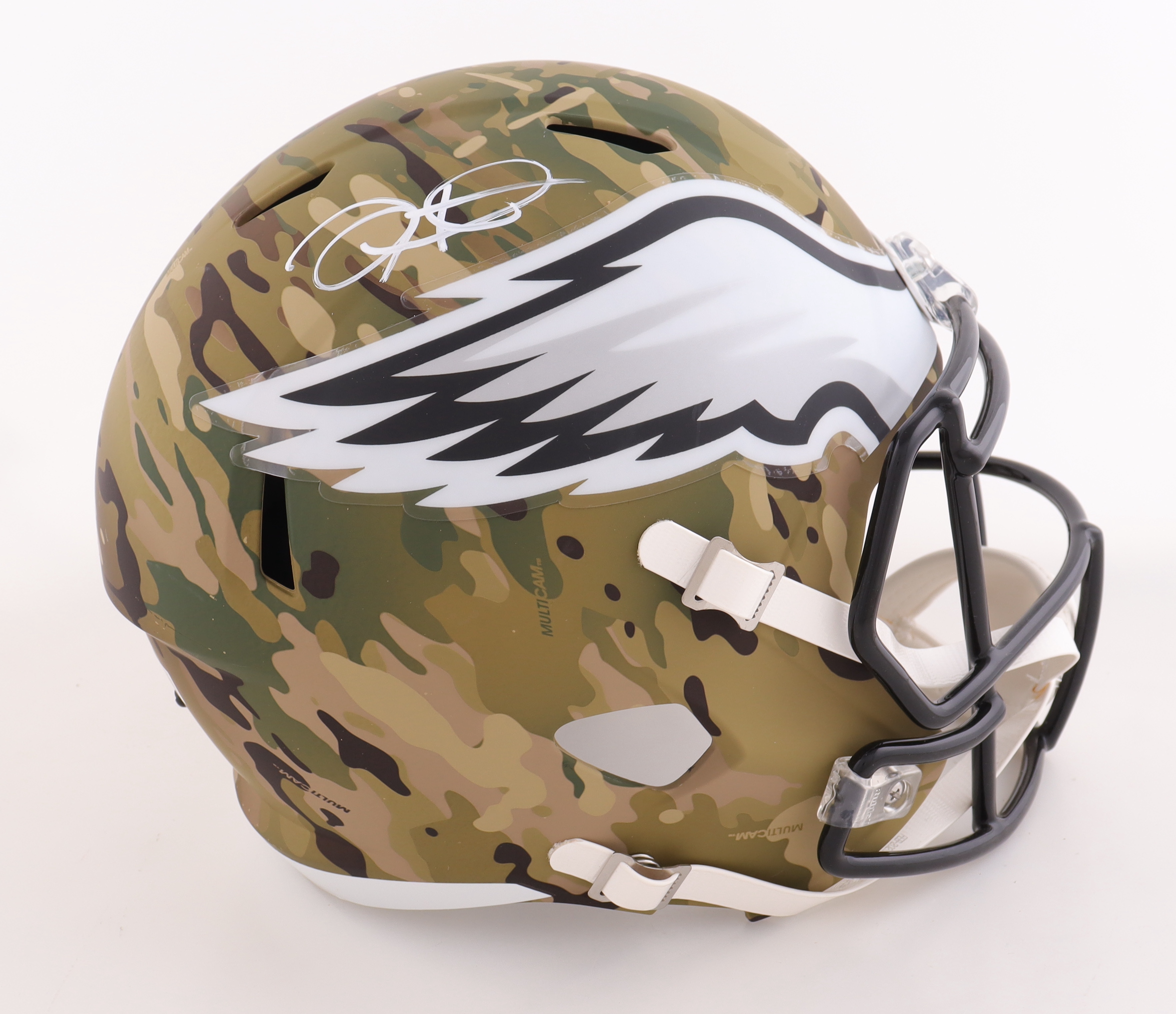 Riddell Philadelphia Eagles full-size replica Camo Alternate Speed helmet. Hand-signed by Jalen Hurts.