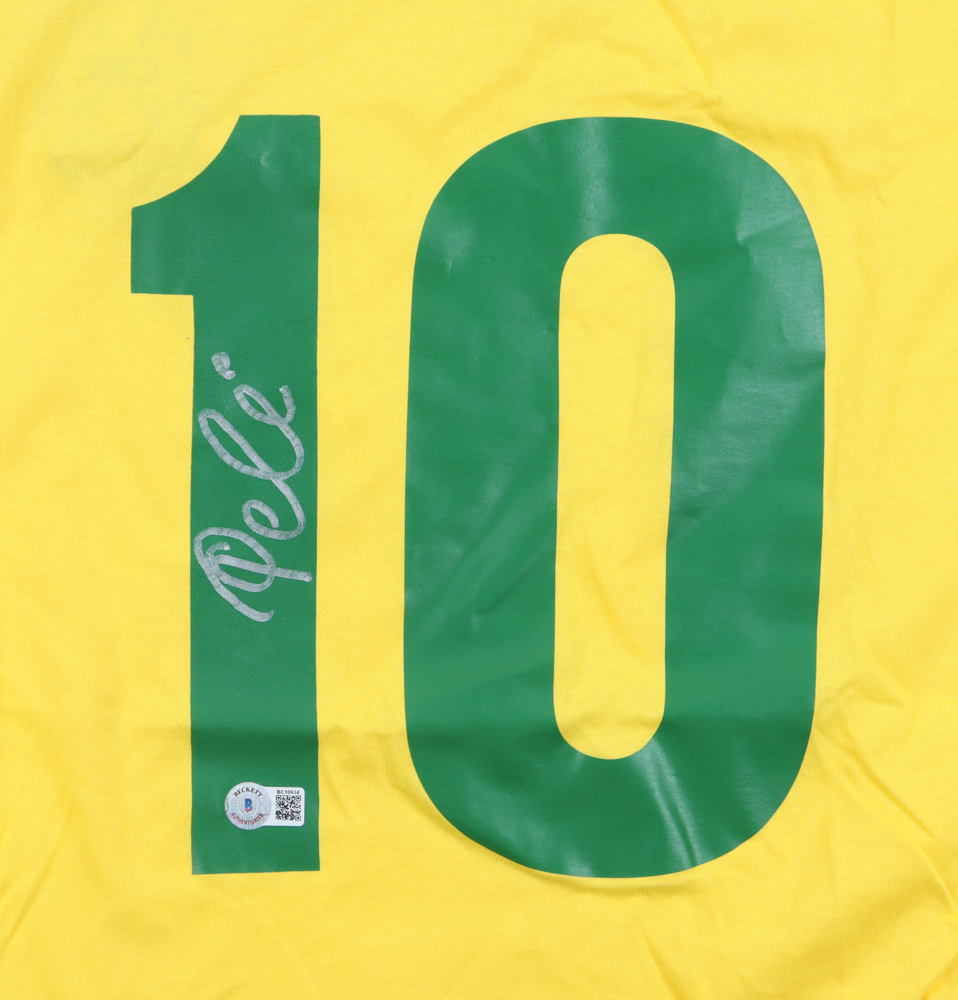 Custom jersey with everything printed on, size XL. Hand-signed by Pele (D. 2022, HOF).