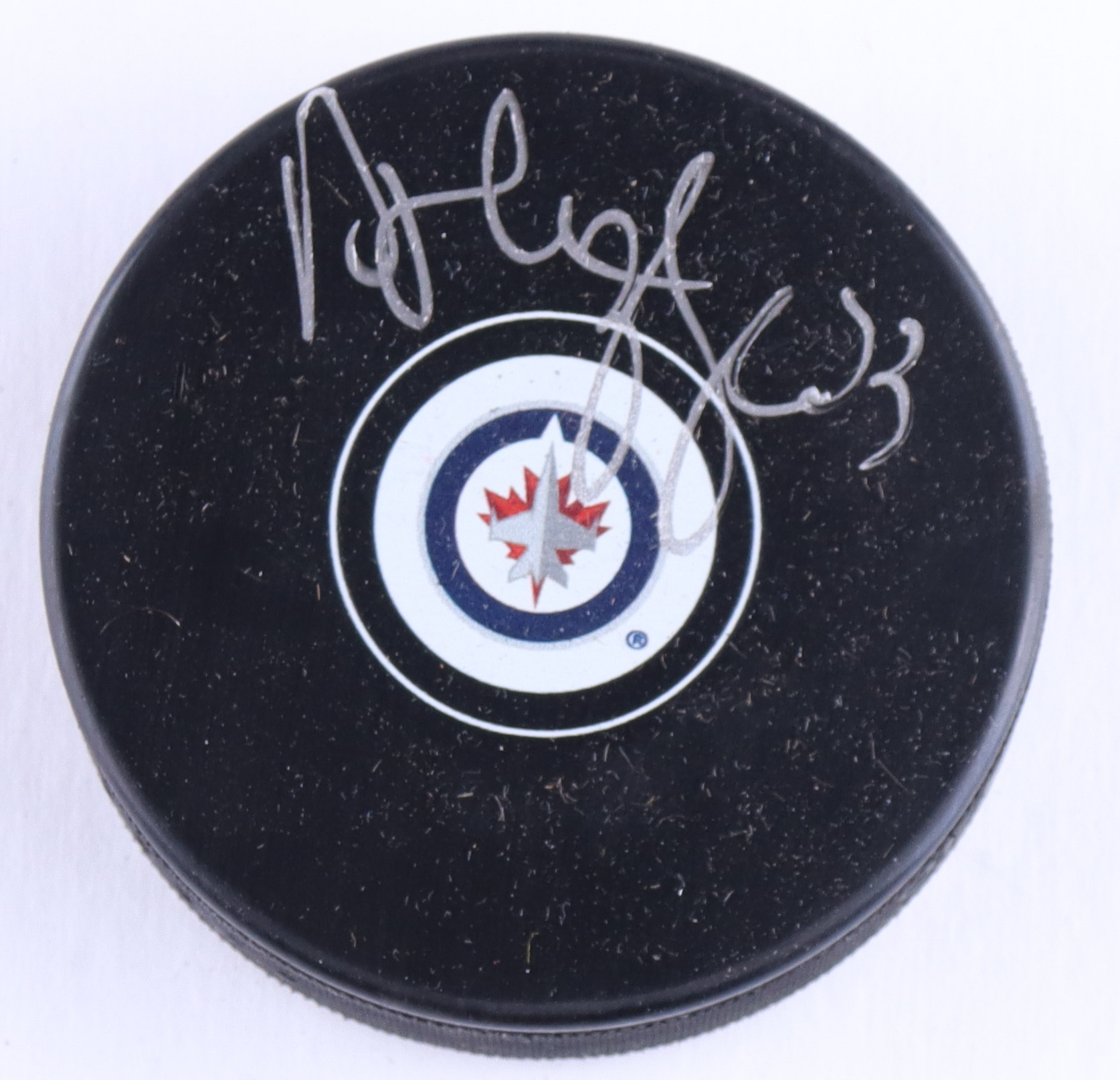 Winnipeg Jets logo hockey puck. Hand-signed by Dustin Byfuglien.