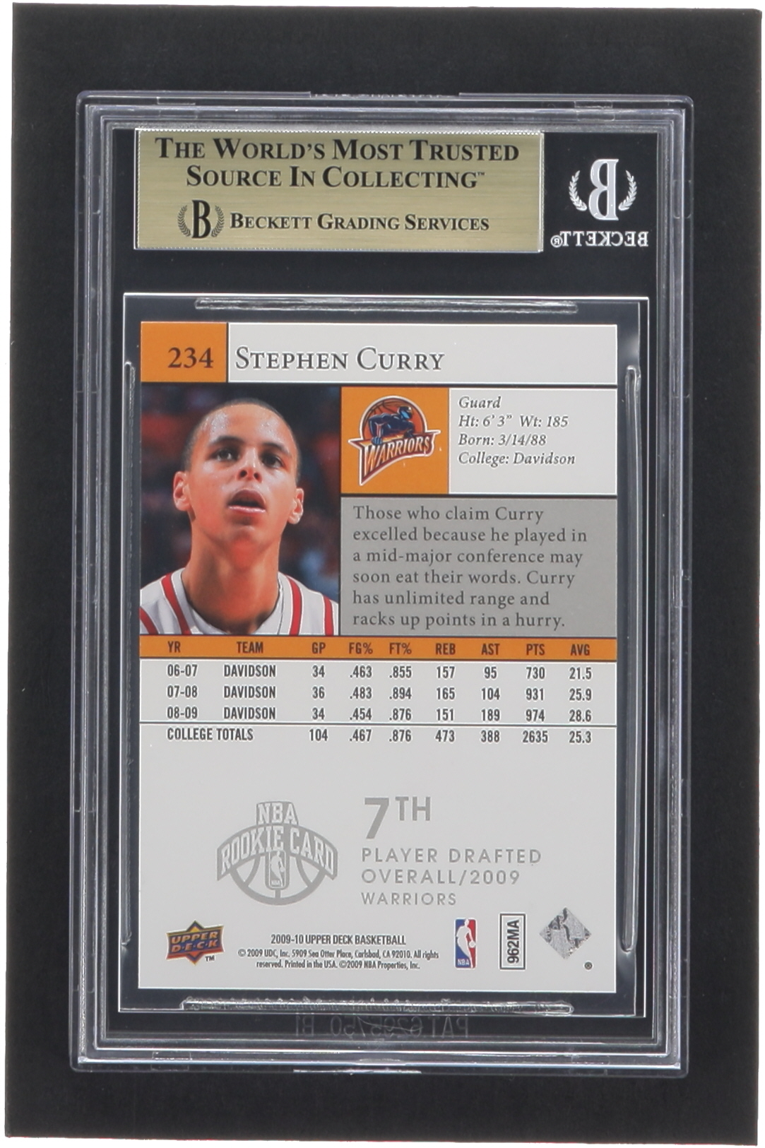Stephen Curry 2009-10 Upper Deck #234 SP RC (BGS 9.5)