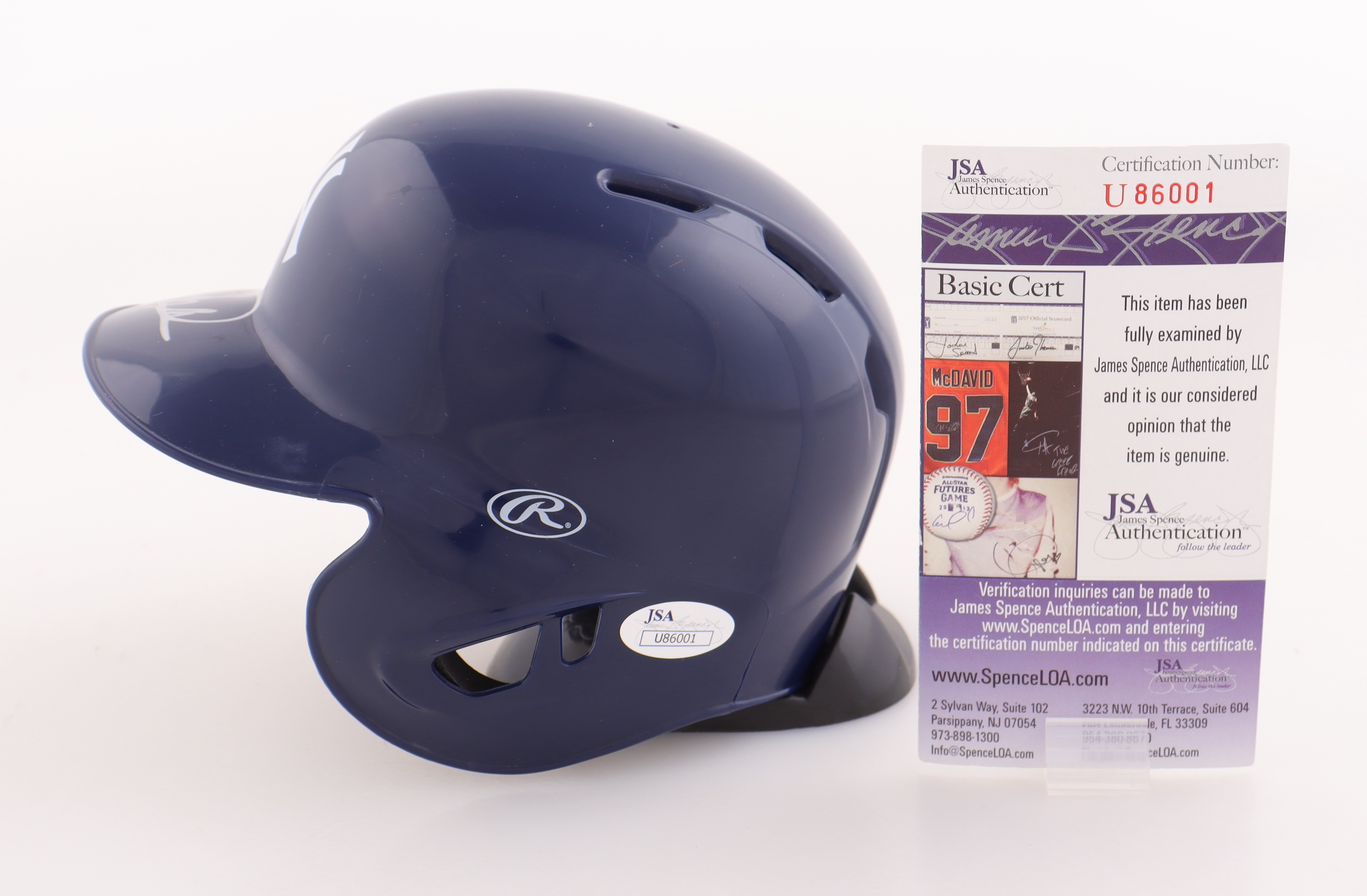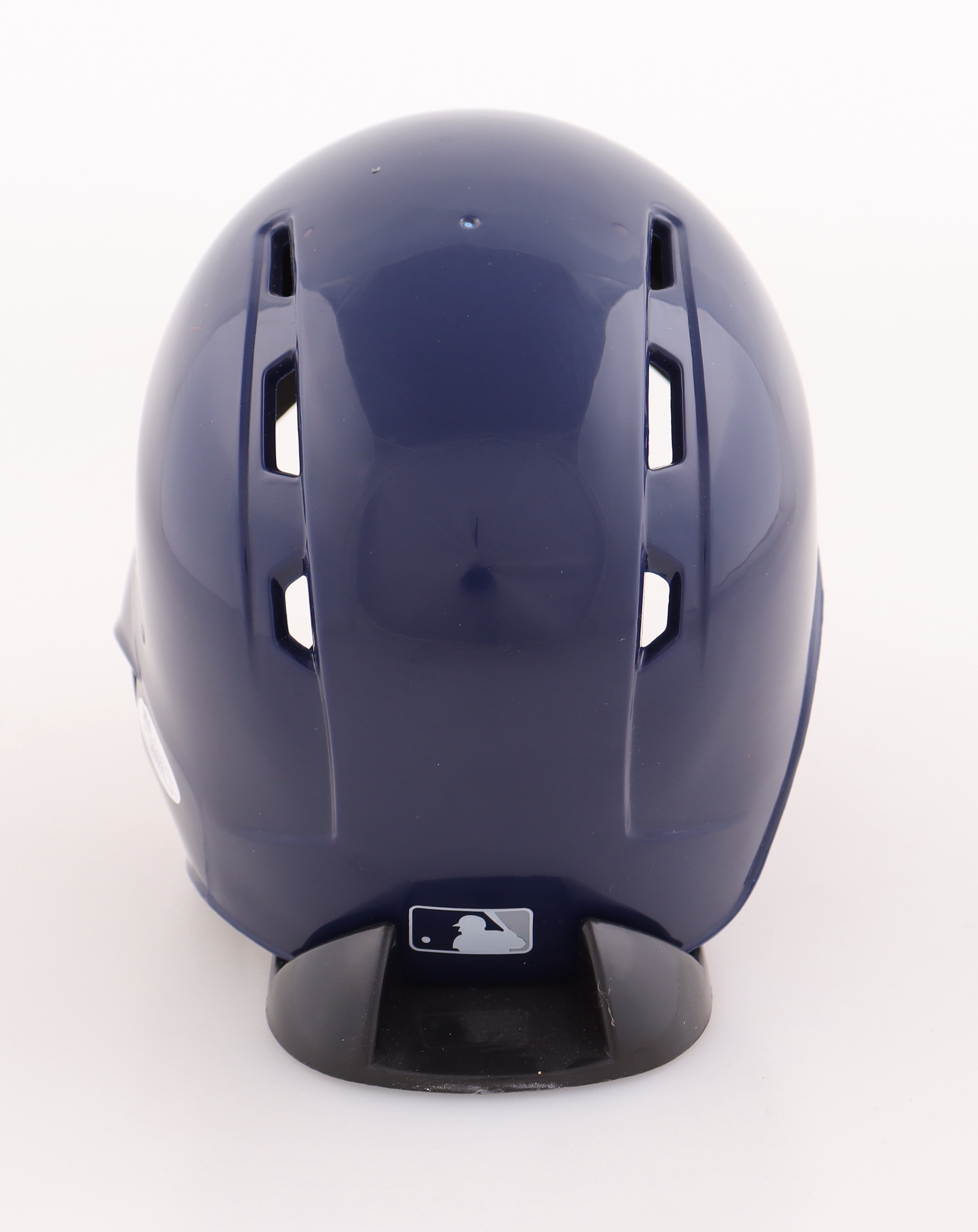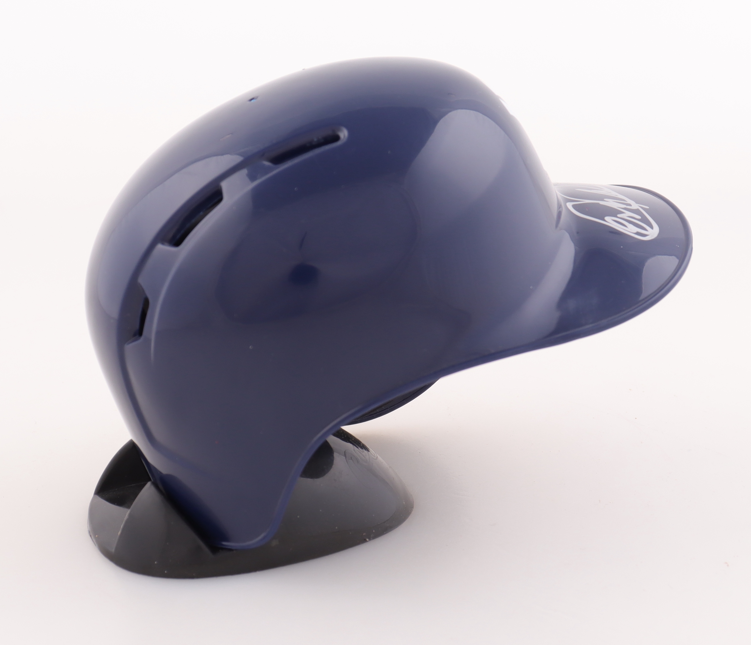 Rawlings New York Yankees batting mini helmet. Hand-signed by Estevan Florial. Display stand is included.