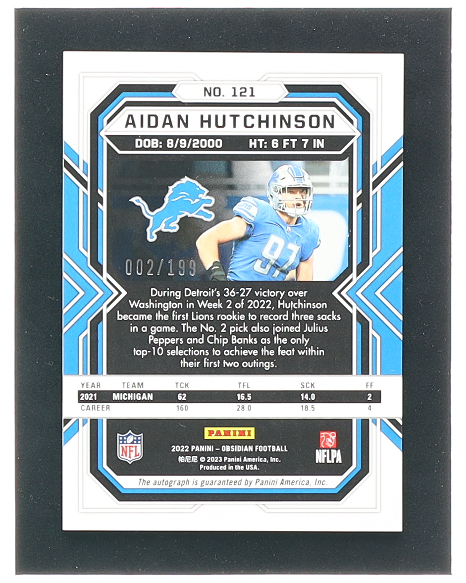 Aidan Hutchinson 2022 Panini Obsidian Rookie Autographs #121 #002/199 RC