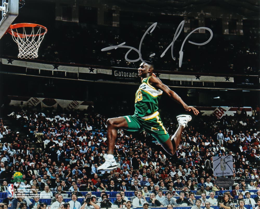 Photo measures 8" x 10" and has been hand-signed by Shawn Kemp (Seattle SuperSonics).