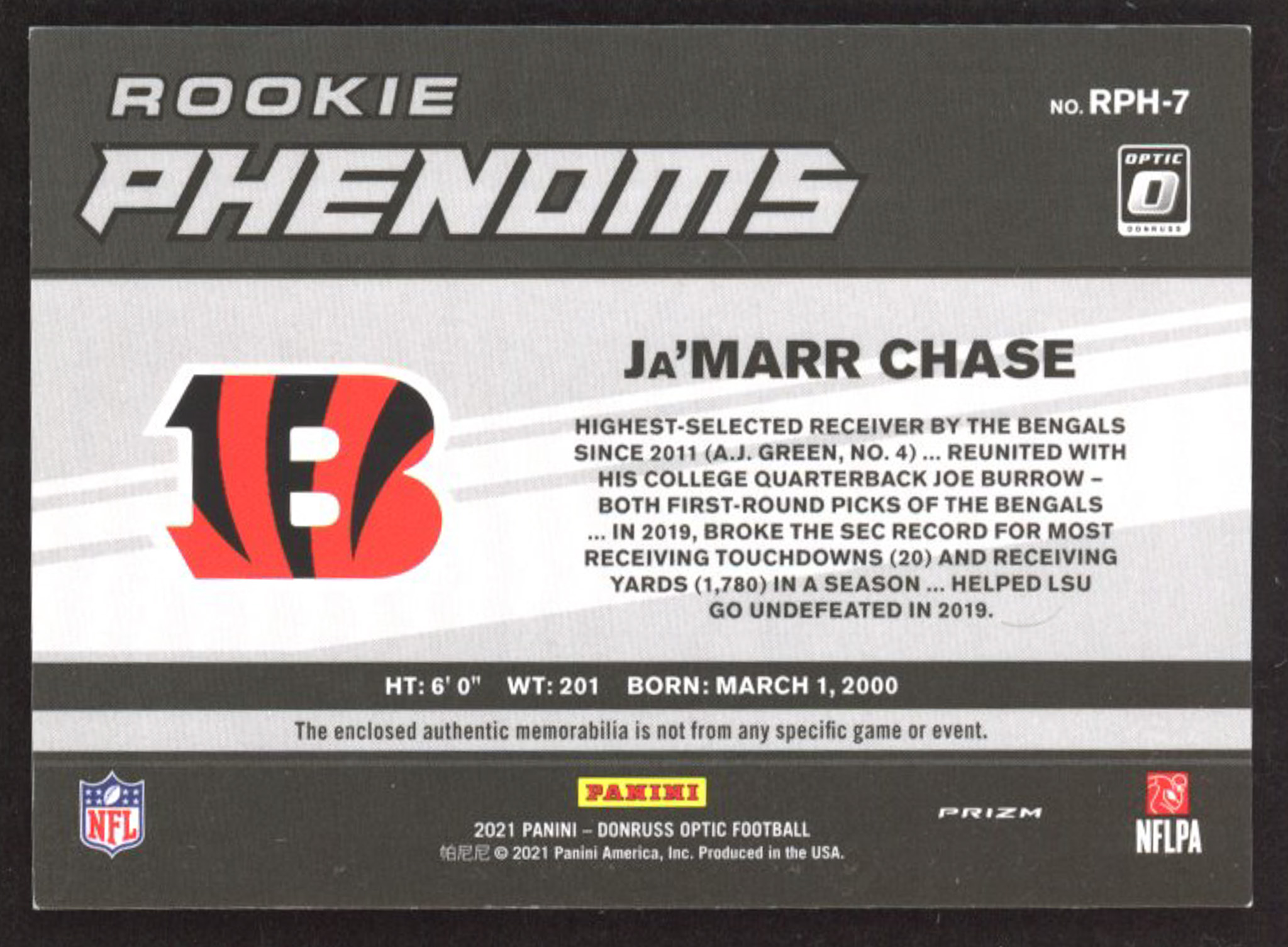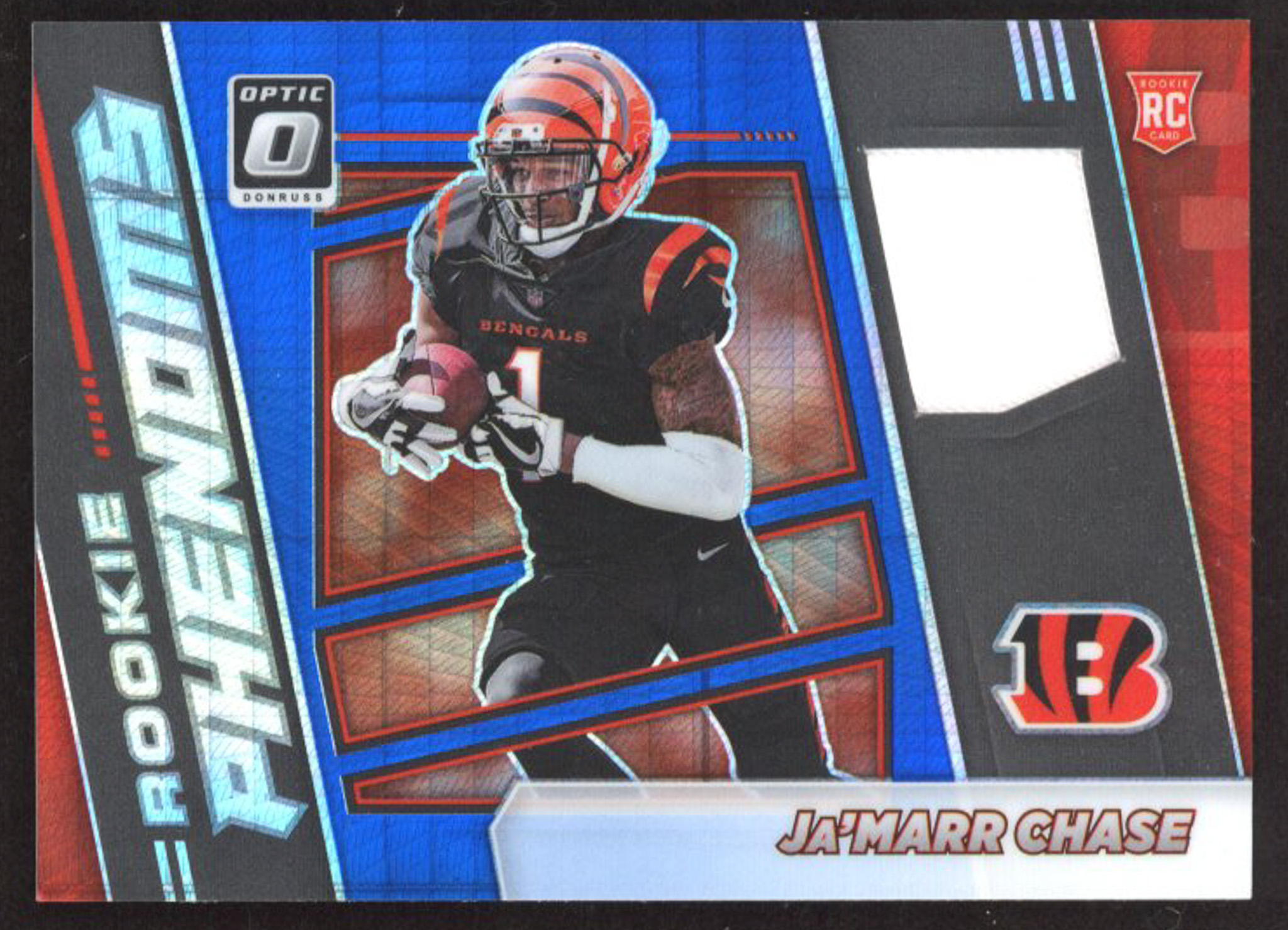 Ja'Marr Chase 2021 Donruss Optic Rookie Phenoms Jerseys Horizontal Blue Hyper #7 RC