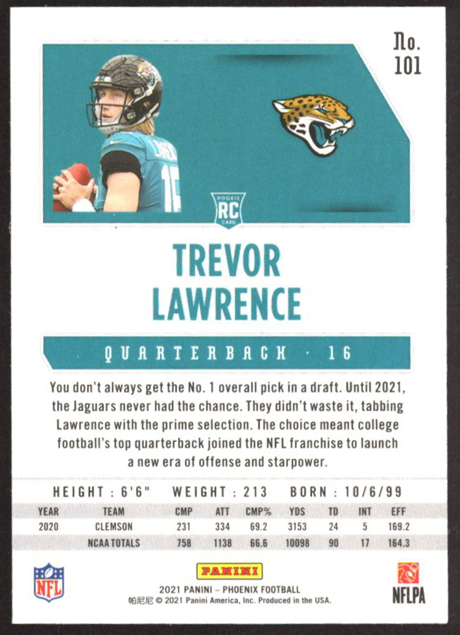 Trevor Lawrence 2021 Panini Phoenix Fire Burst #101 RC