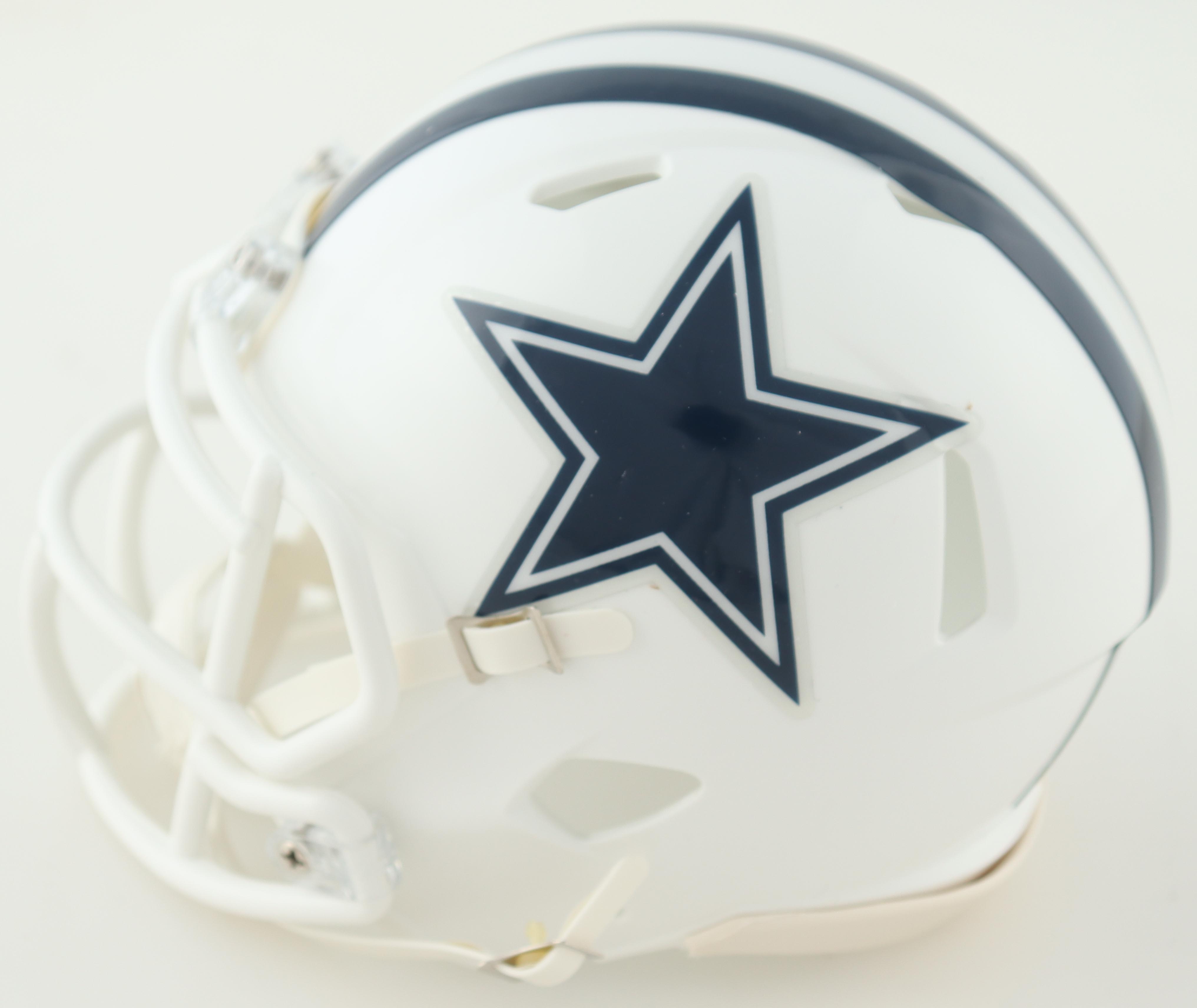 Riddell Dallas Cowboys throwback speed mini helmet. Has been hand-signed by Deuce Vaughn.