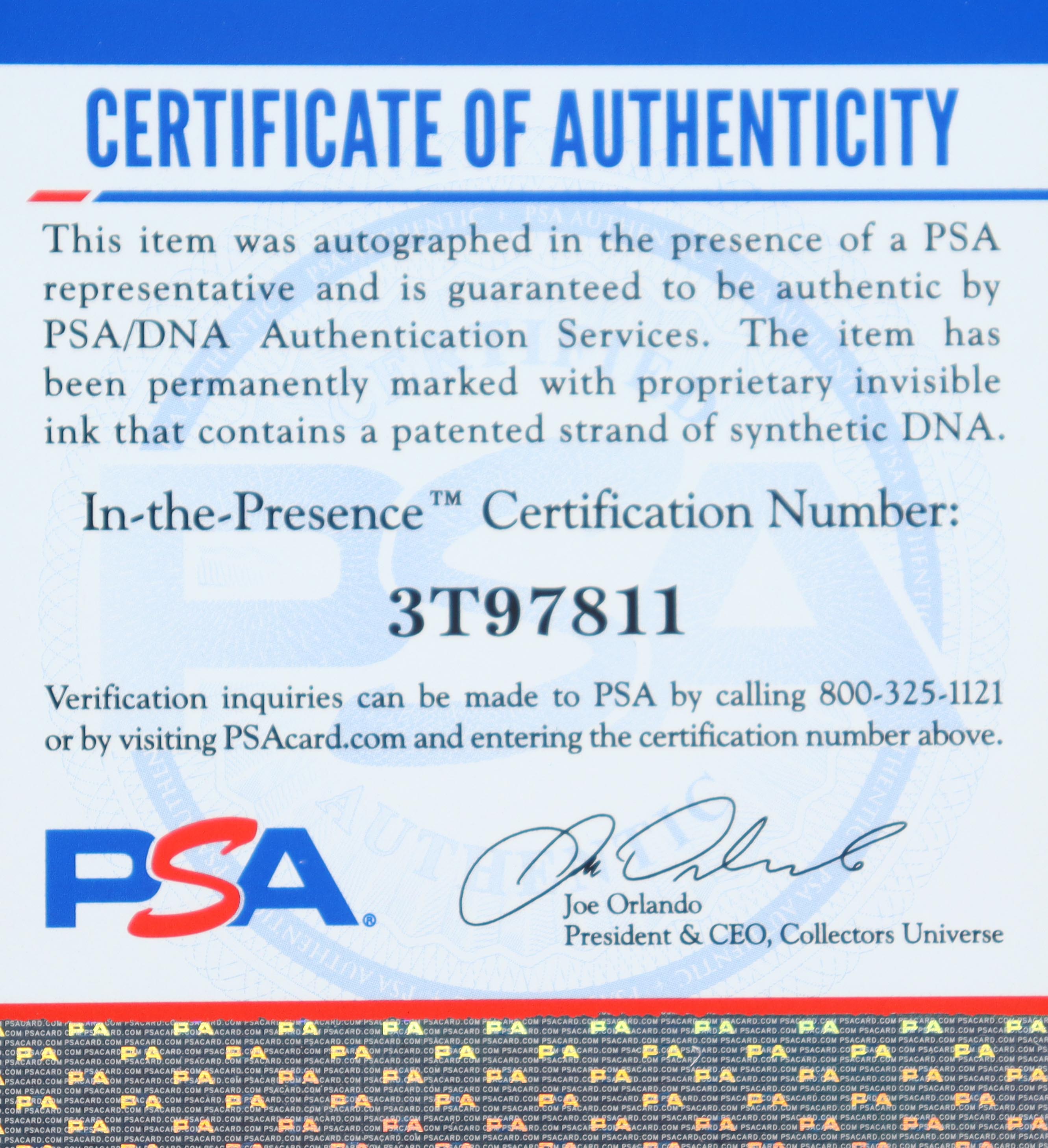 The autograph(s) includes an official PSA/DNA hologram and matching COA for authenticity purposes. The signing of this item was witnessed by PSA.