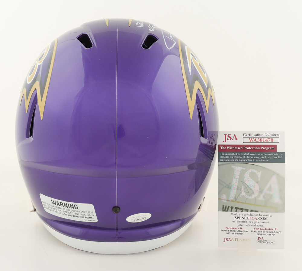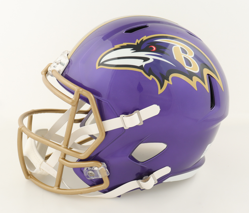 Riddell Baltimore Ravens full-size replica Flash Alternate Speed helmet. Hand-signed and inscribed by Justin Tucker.