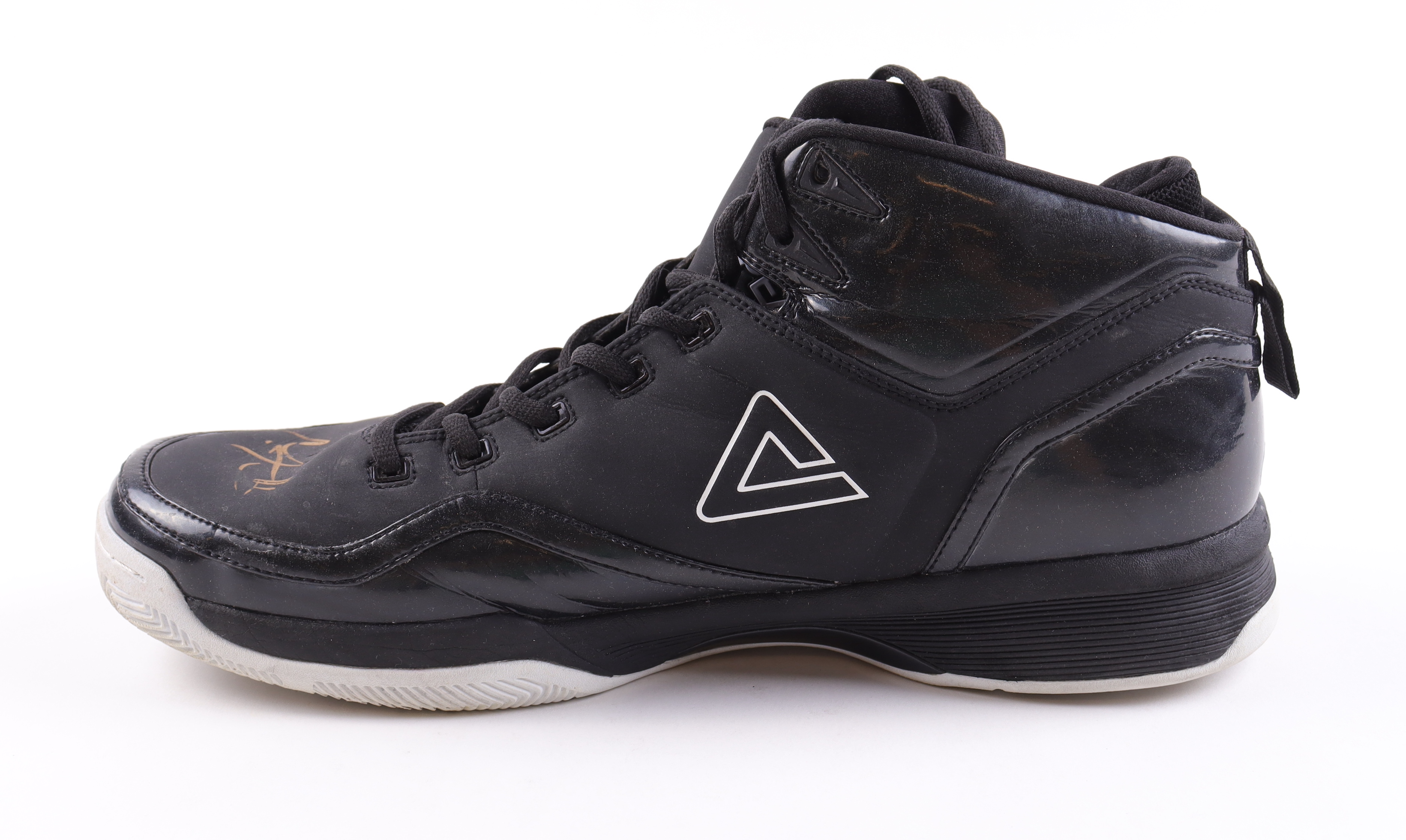 Peak Cushion-3 black game used shoe. Hand-signed by C.J. Watson.