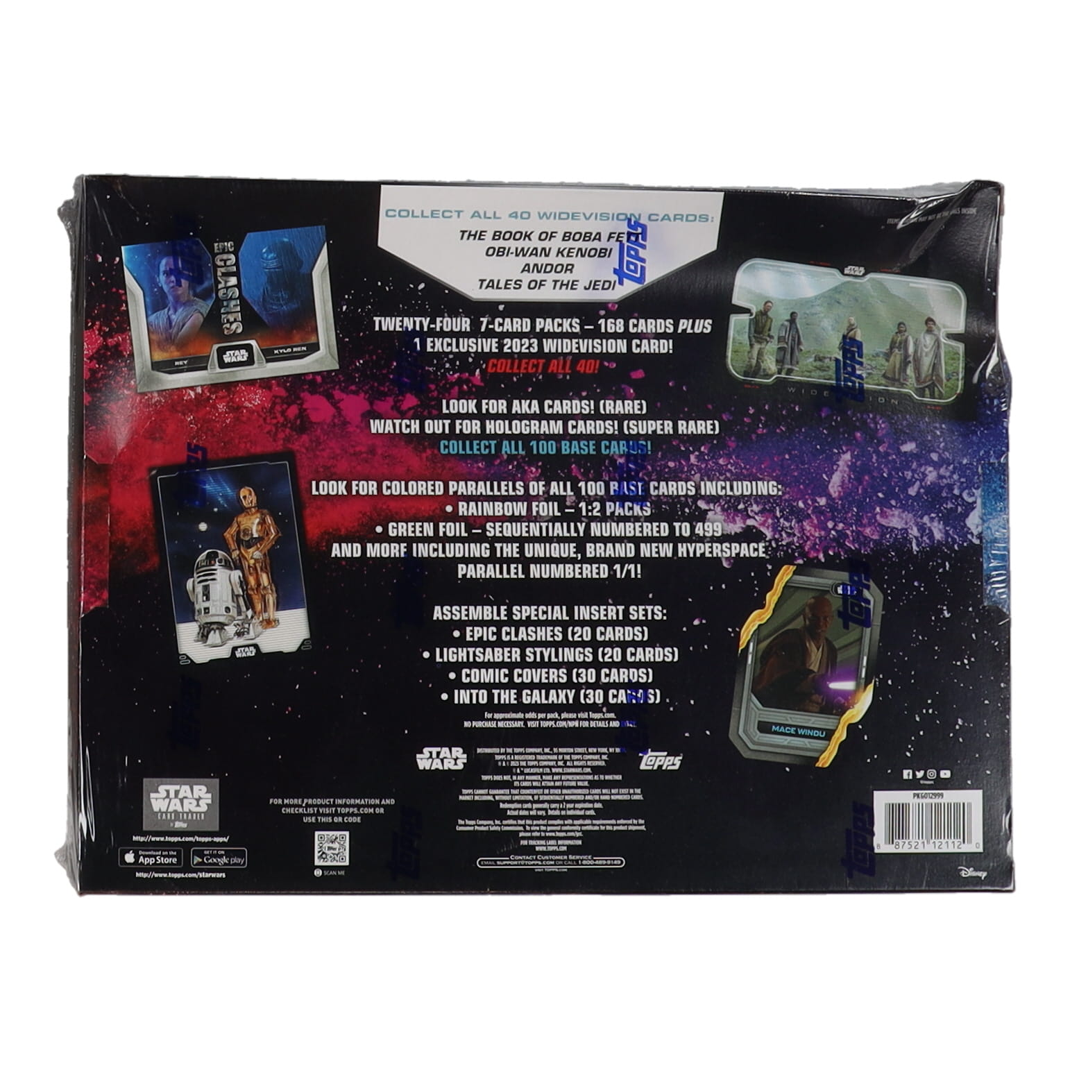 2023 Topps Star Wars Short Inserts: 2023 Topps Star Wars includes multiple inserts that you won't want to miss: Epic Clashes spotlight some of the most legendary rivalries in Star Wars history; Lightsaber Stylings showcase different types of lightsabers from TV and film; Comic Covers feature key Star Wars comic art; Into the Galaxy focuses on planets from the Star Wars universe.