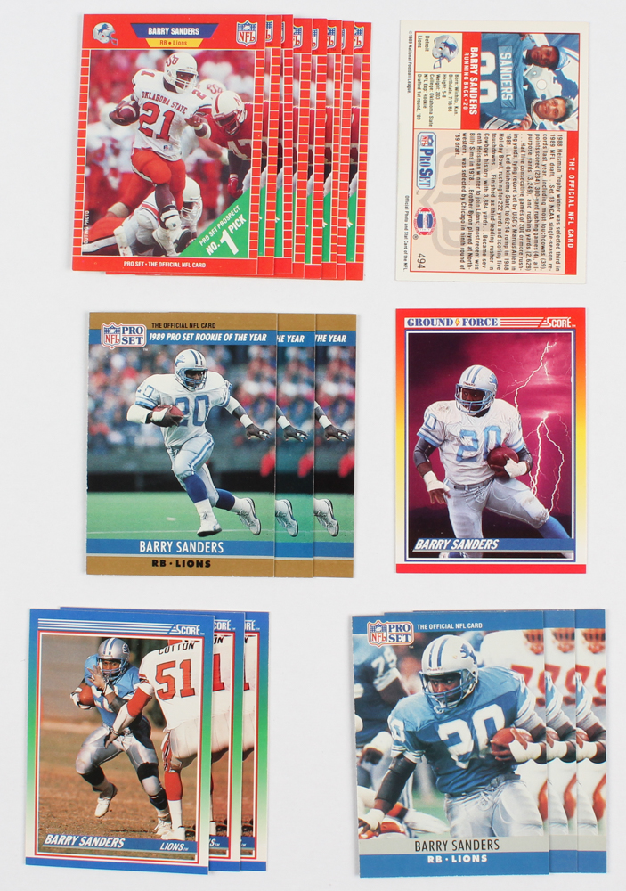 Lot of (19) Barry Sanders Football Cards with 1990 Score #325, 1990 FACT Pro Set #1, 1989 Pro Set #494 RC, 1990 Score #20, & 1990 Pro Set #102