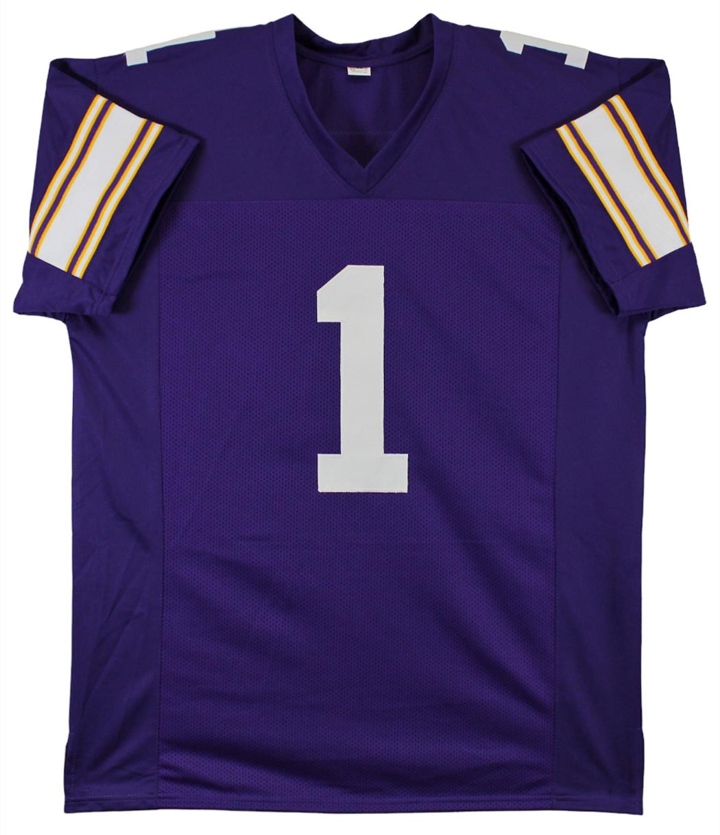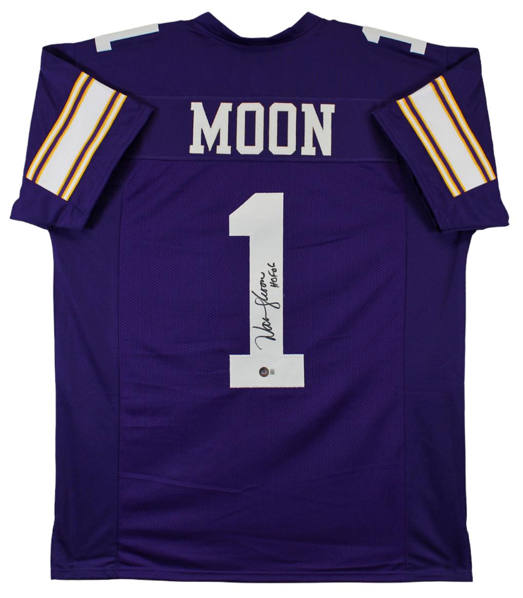 Custom Jersey with everything sewn on, size XL. Hand-signed and inscribed by Warren Moon (HOF).
