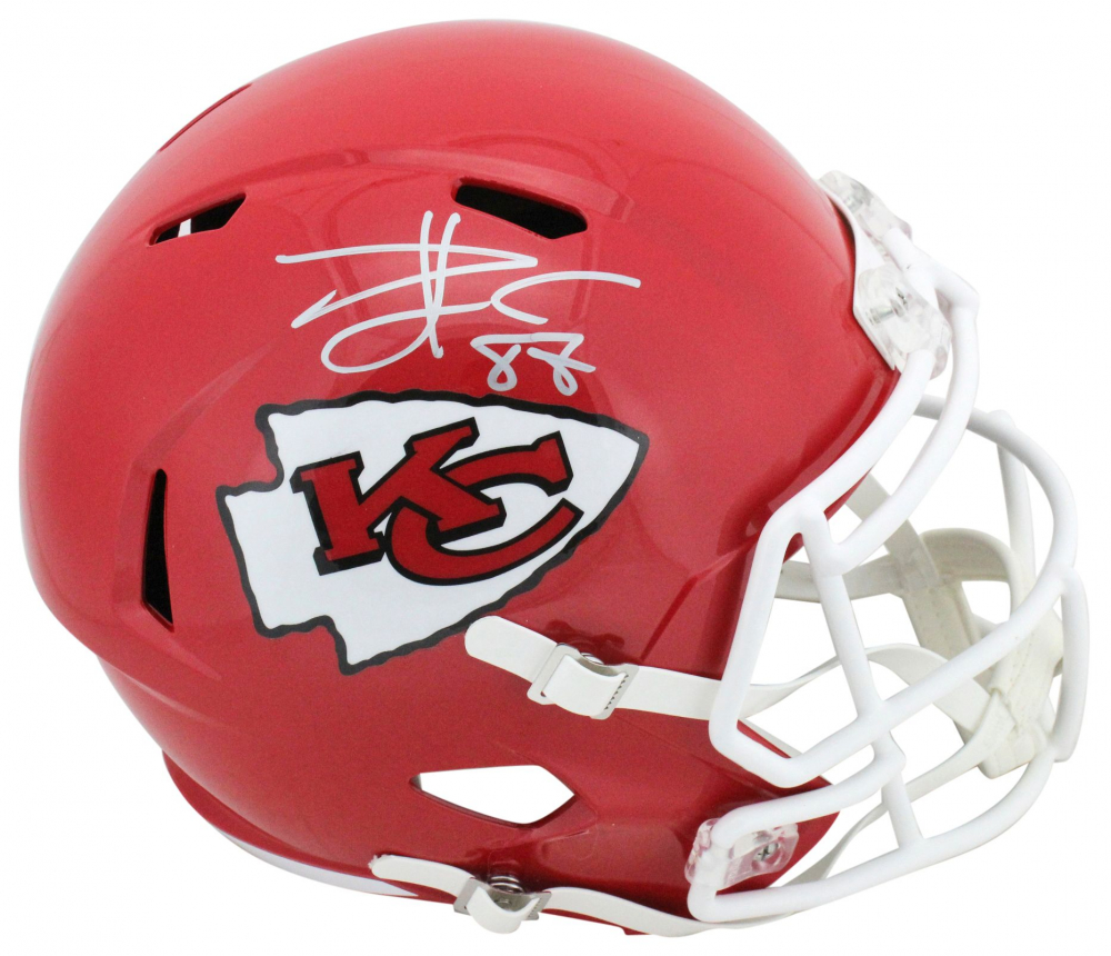 Riddell Kansas City Chiefs full-size replica Speed helmet. Hand-signed by Travis Kelce.
