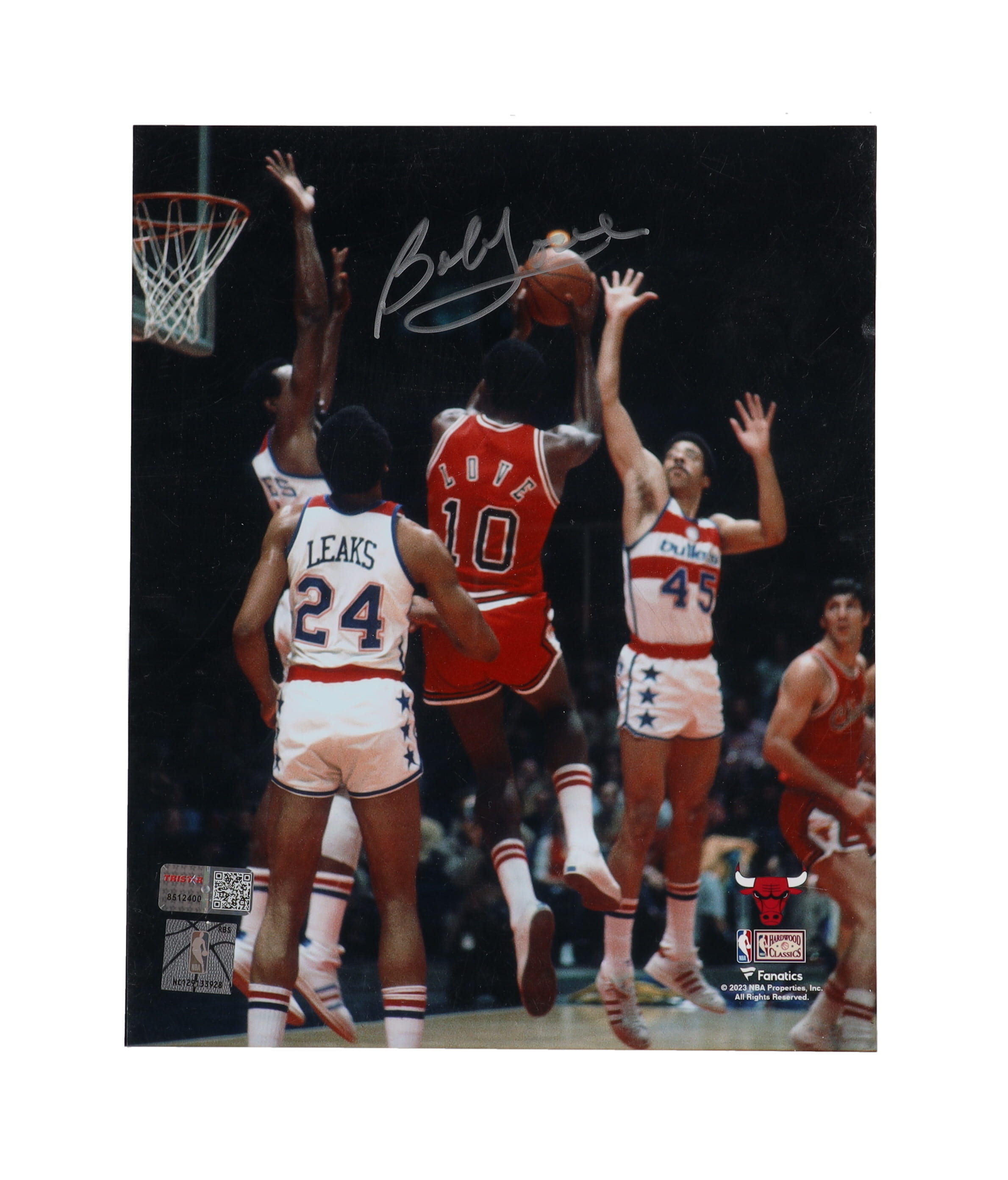 Photo measures 8" x 10" in size and has been hand-signed by Bob Love (Chicago Bulls).