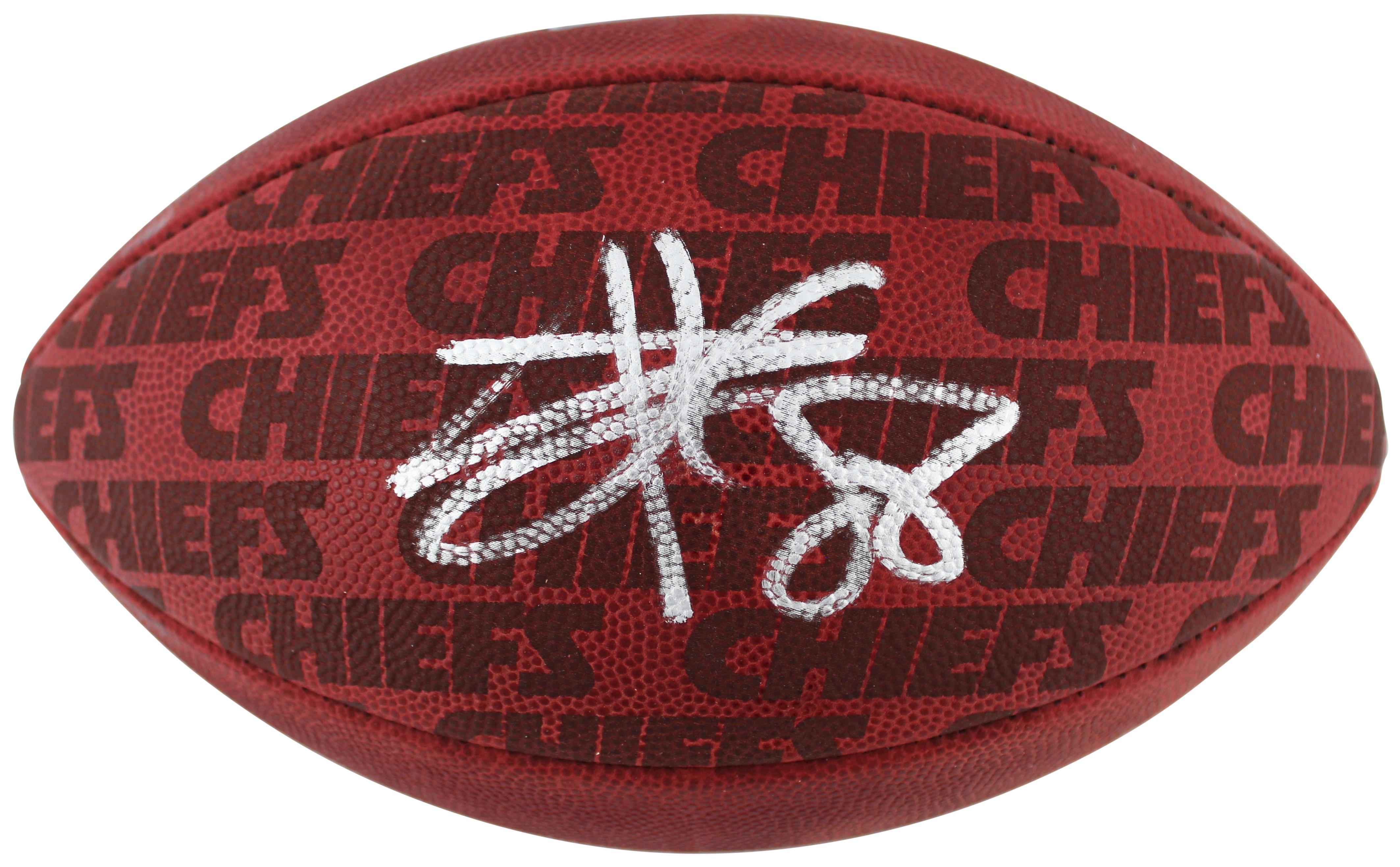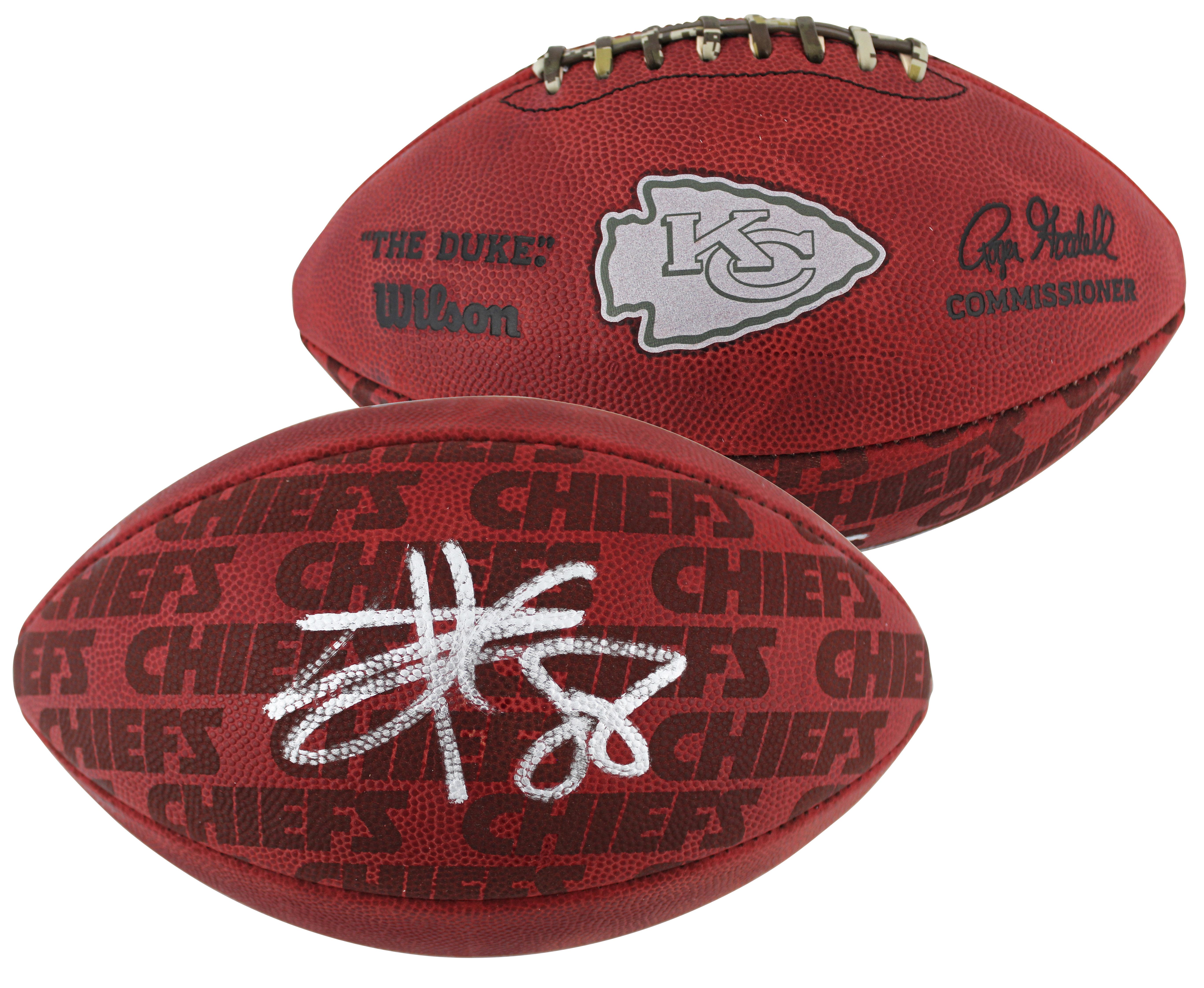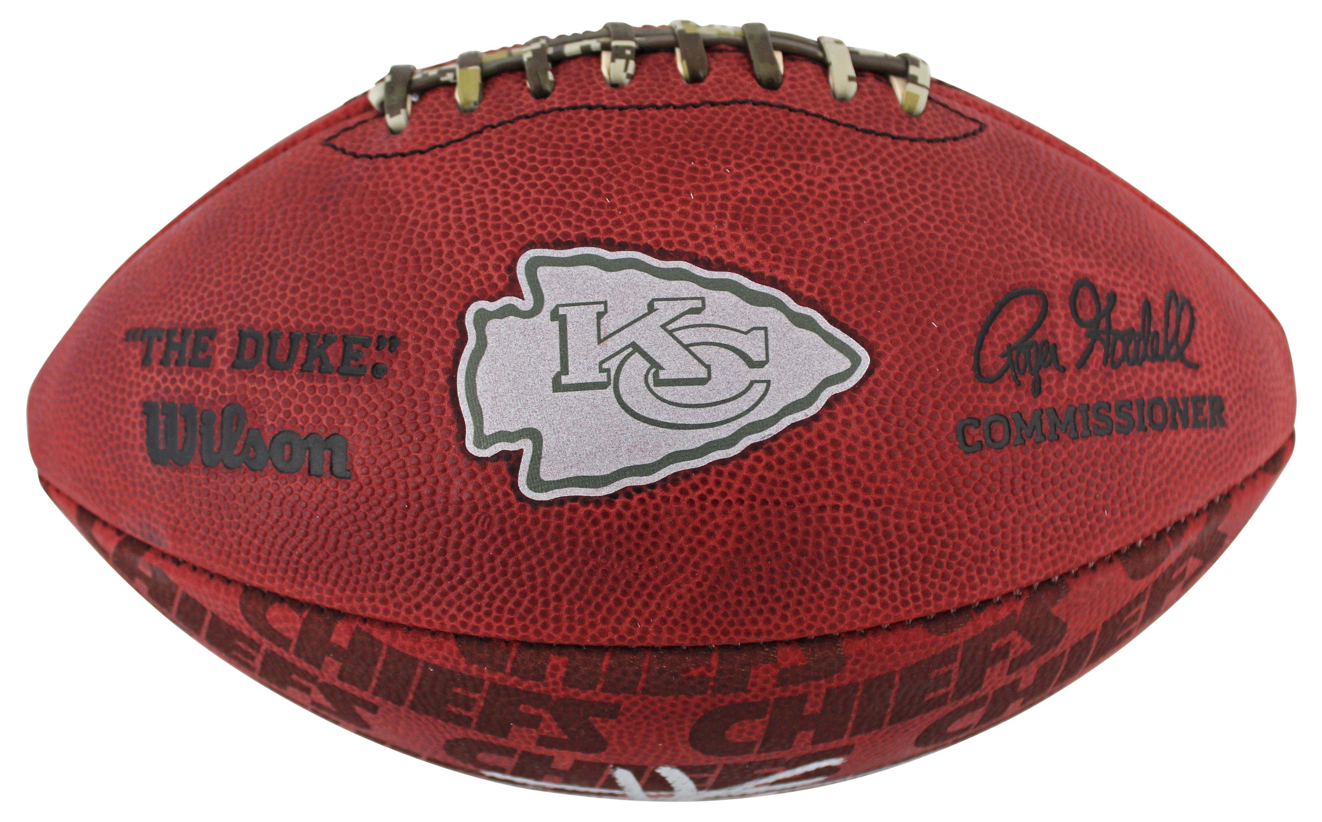 Wilson Official NFL "The Duke" Game Ball Kansas City Chiefs team showcase logo football. Hand-signed by Travis Kelce.