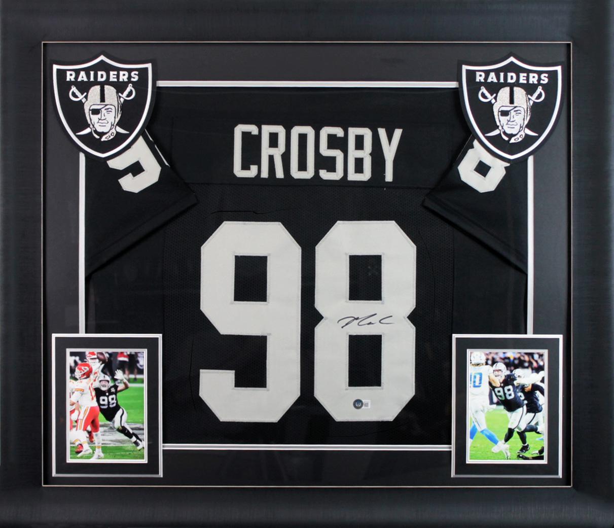 Custom frame measures 32" x 37" in size and features a jersey that has been hand-signed by Maxx Crosby.