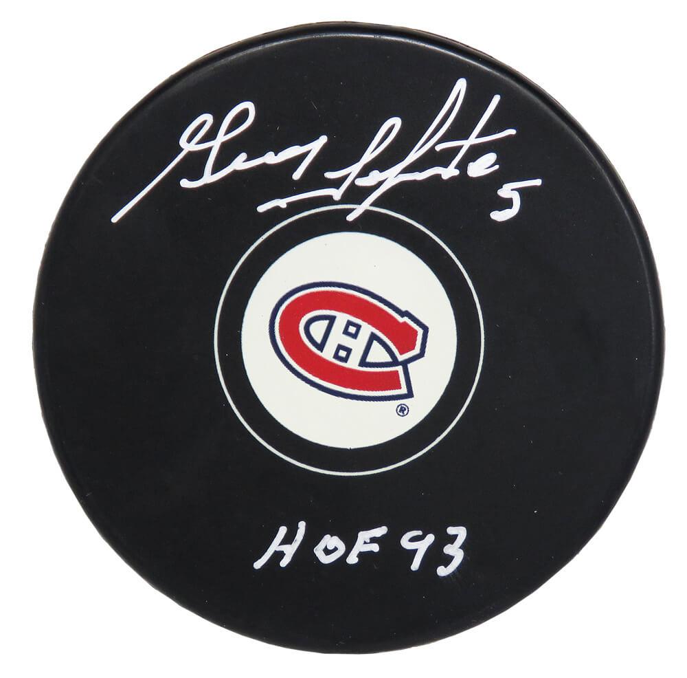 Guy Lapointe Signed Canadiens Logo Hockey Puck Inscribed "HOF 93" (Schwartz Sports)