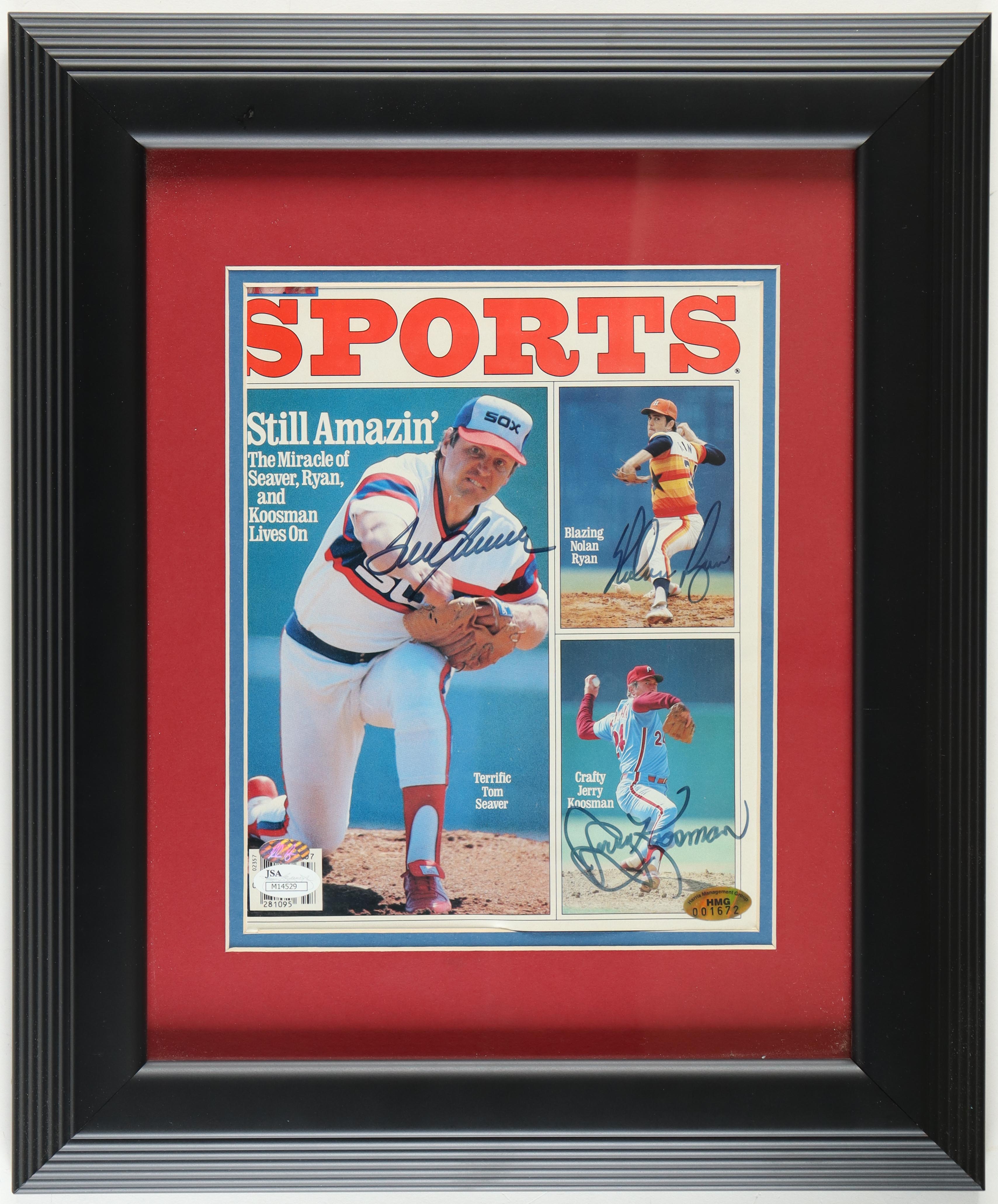 Tom Seaver, Nolan Ryan & Jerry Koosman Signed "Sports" Custom Framed Magazine Cover Display (JSA)