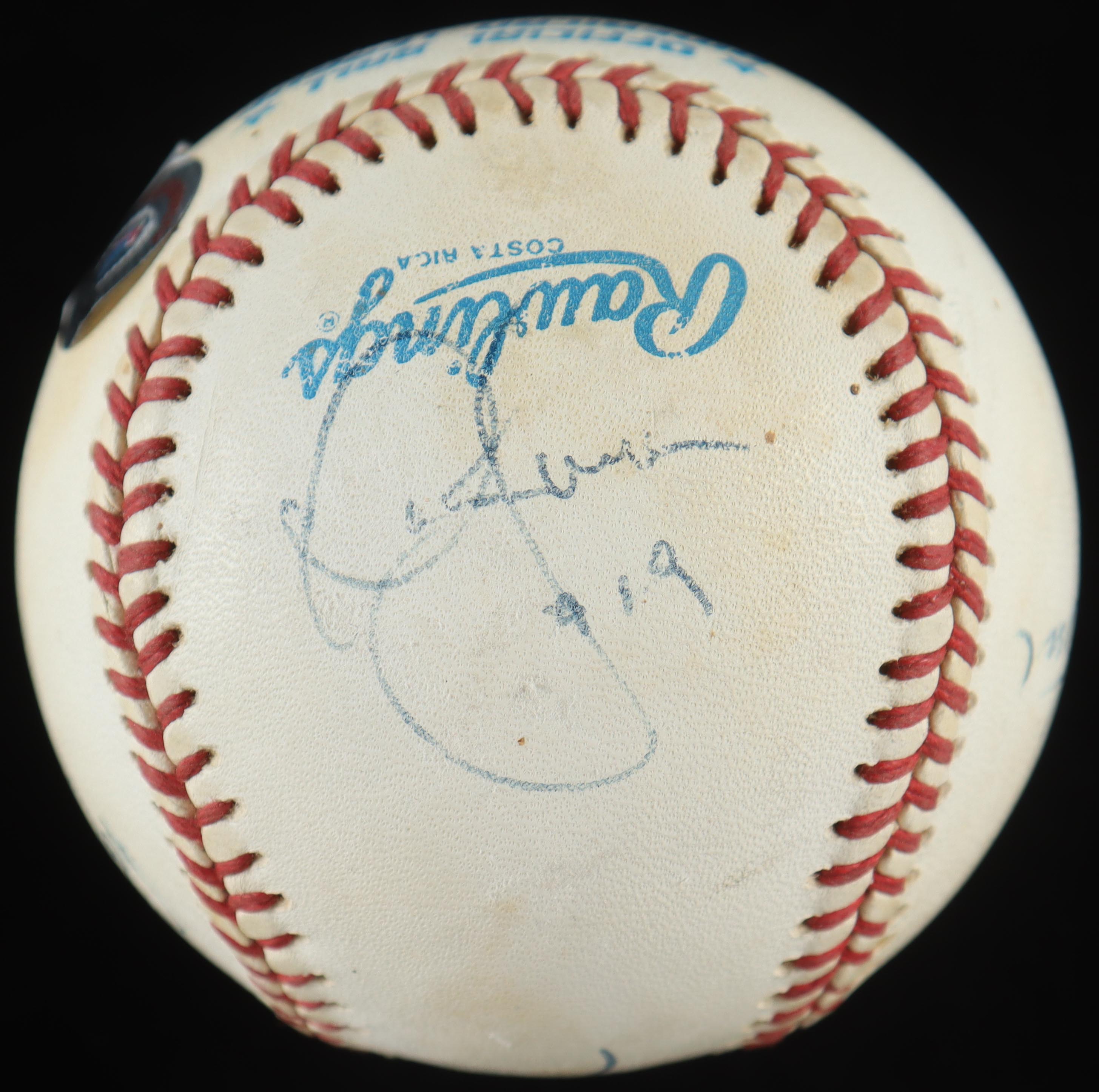Rawlings Official American League baseball. Hand-signed by Tommy John, Dick Tidrow, Jay Johnstone, Dion James, Roy White.