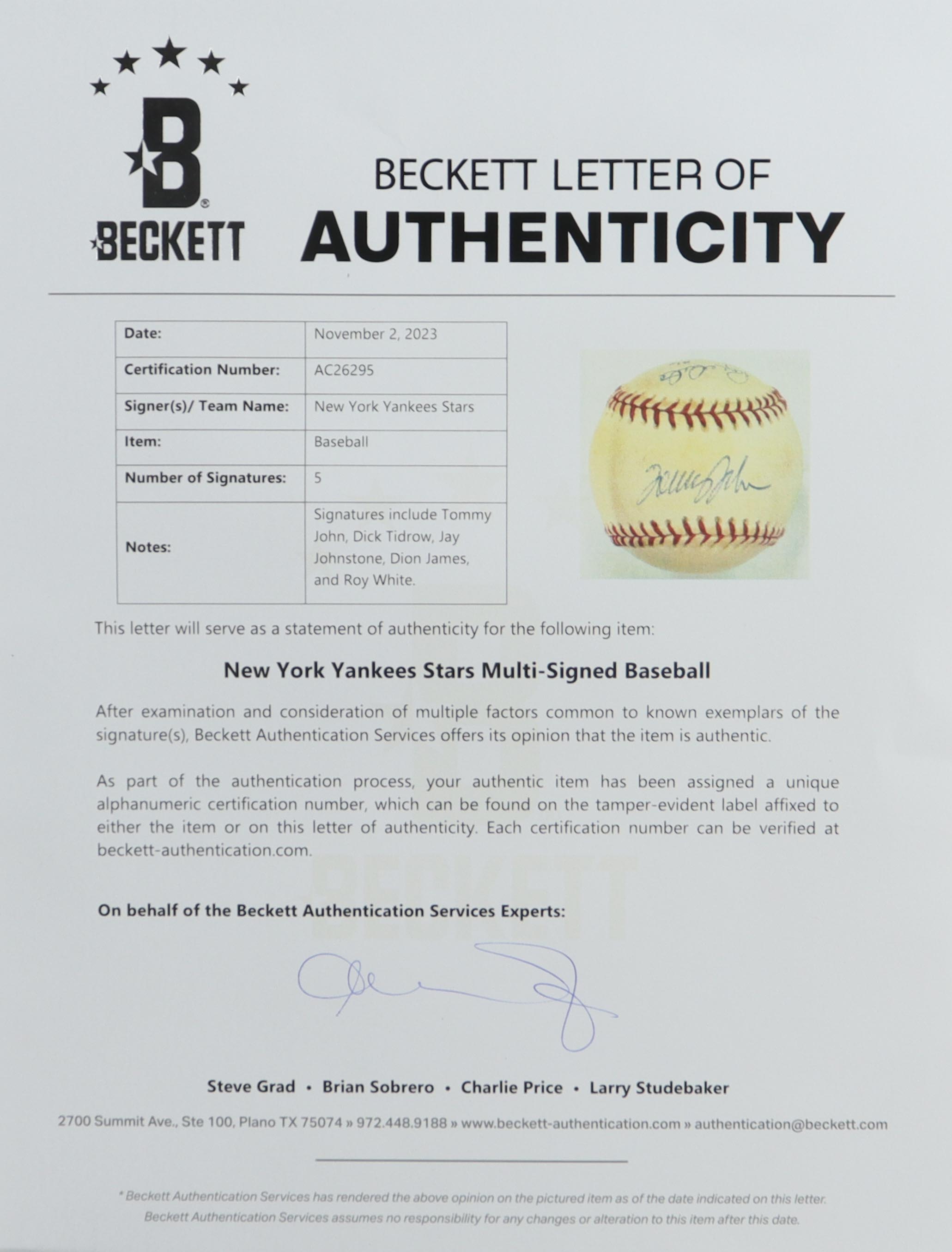 Yankees Stars OAL Baseball Signed by (5) with Tommy John, Dick Tidrow, Jay Johnstone, Dion James, Roy White (Beckett)