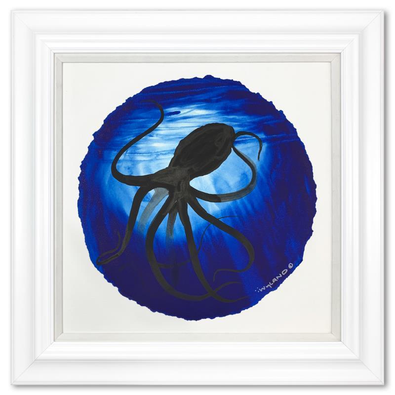 "Blue Octopus Float" is an original painting, watercolor on deckle edge paper by Wyland. Hand signed by the artist, the piece comes custom framed and with a letter of authenticity. Measures approximately 30" x 30" (framed), 19.5" x 19.5" (image).