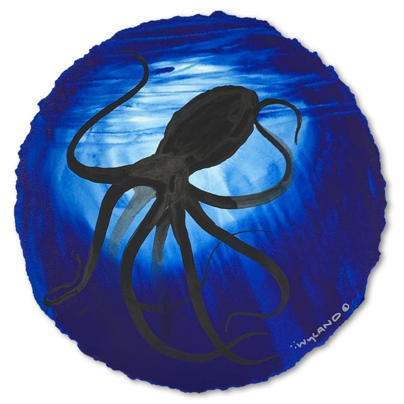Wyland Signed "Blue Octopus Float" 30x30 Original Watercolor Painting on Deckle Edge Paper (PA)