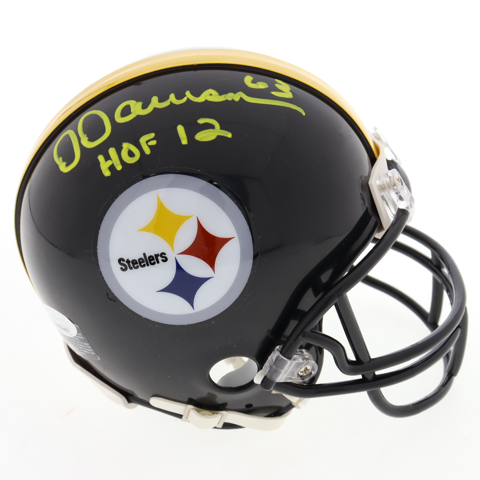 Riddell Pittsburgh Steelers mini helmet. Hand-signed and inscribed by Dermontti Dawson (HOF).