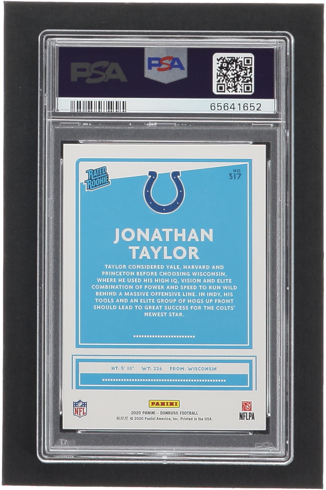 Jonathan Taylor 2020 Donruss Rated Rookies Canvas #317 RC (PSA 10)
