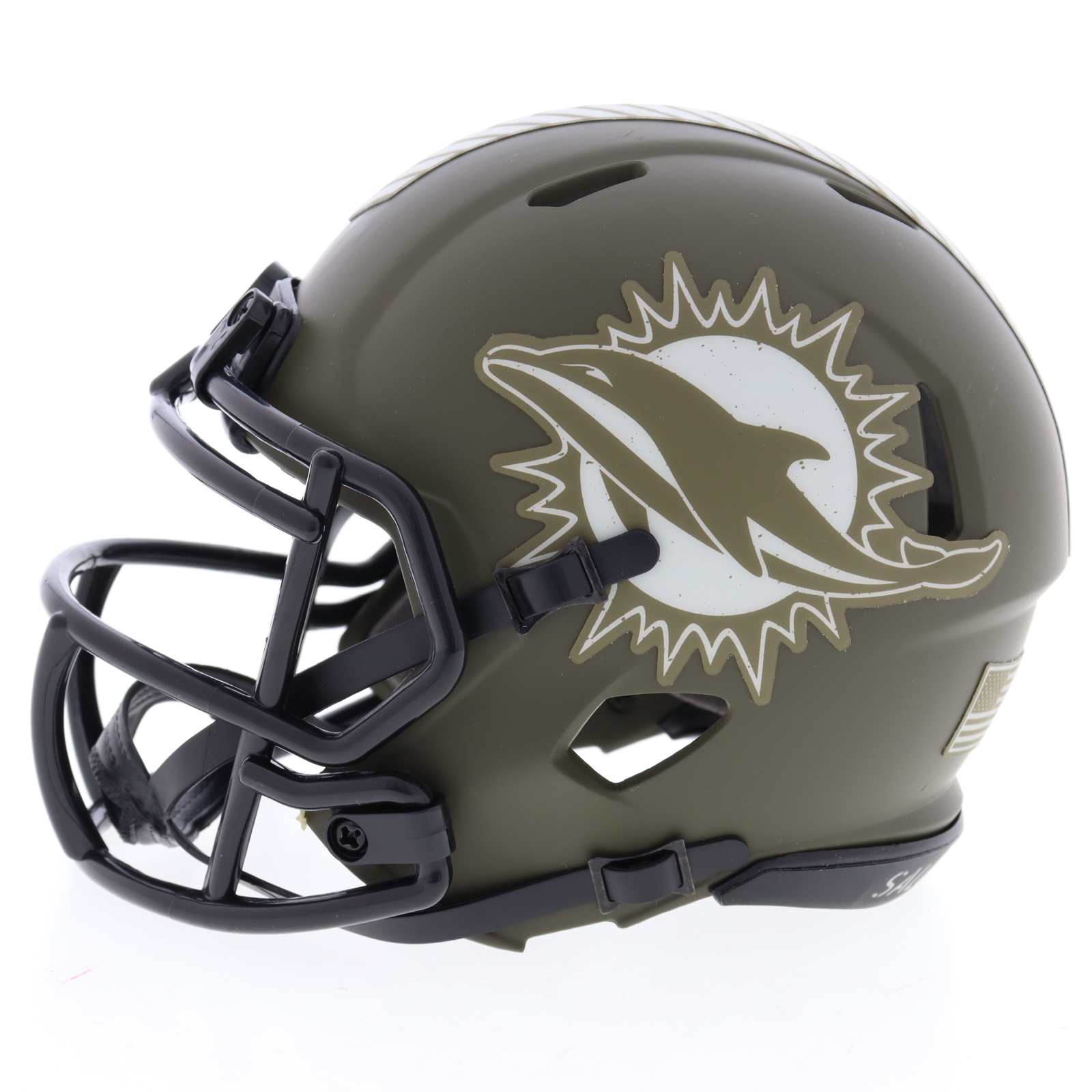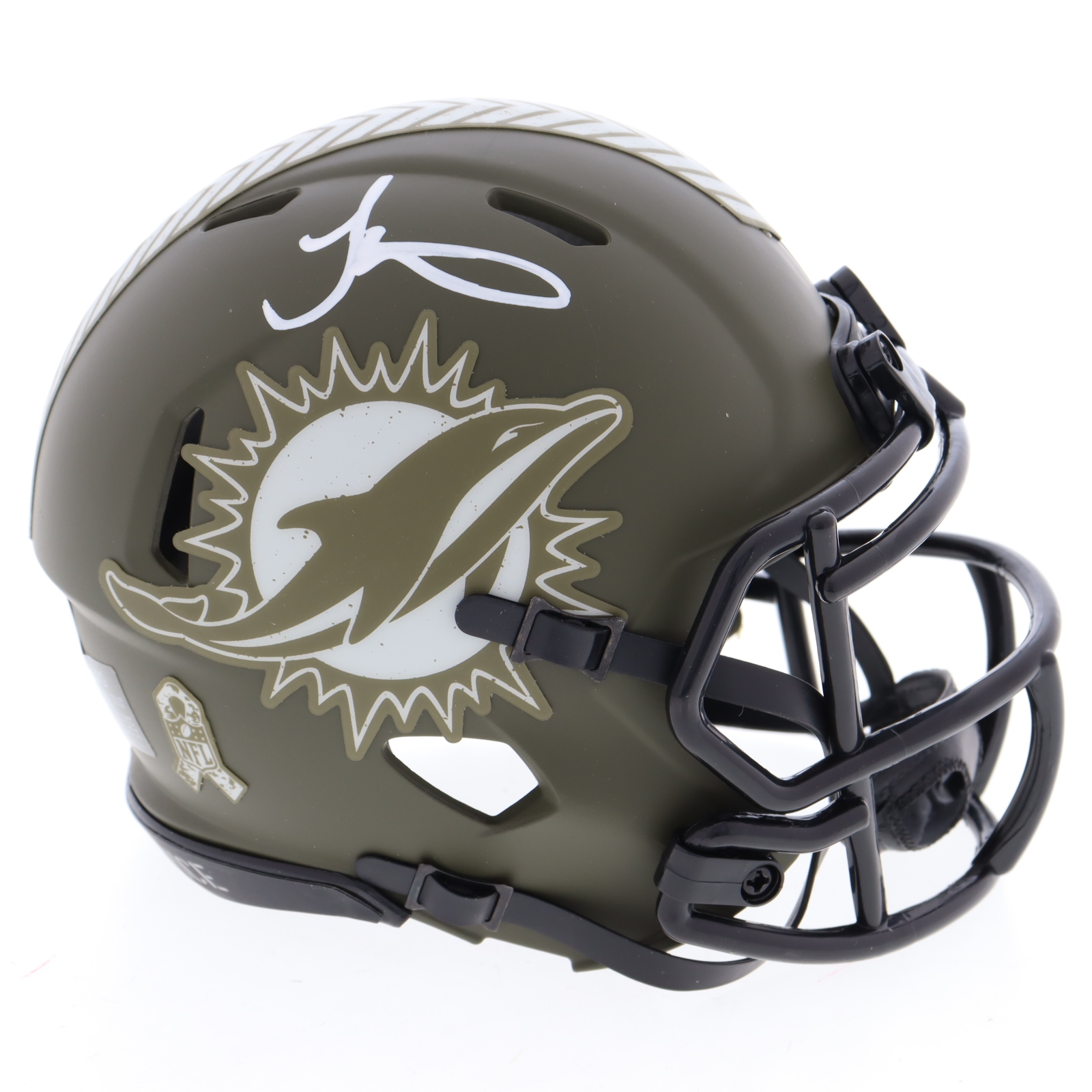 Riddell Miami Dolphins Salute to Service Alternate Speed mini helmet. Hand-signed by Tyreek Hill.