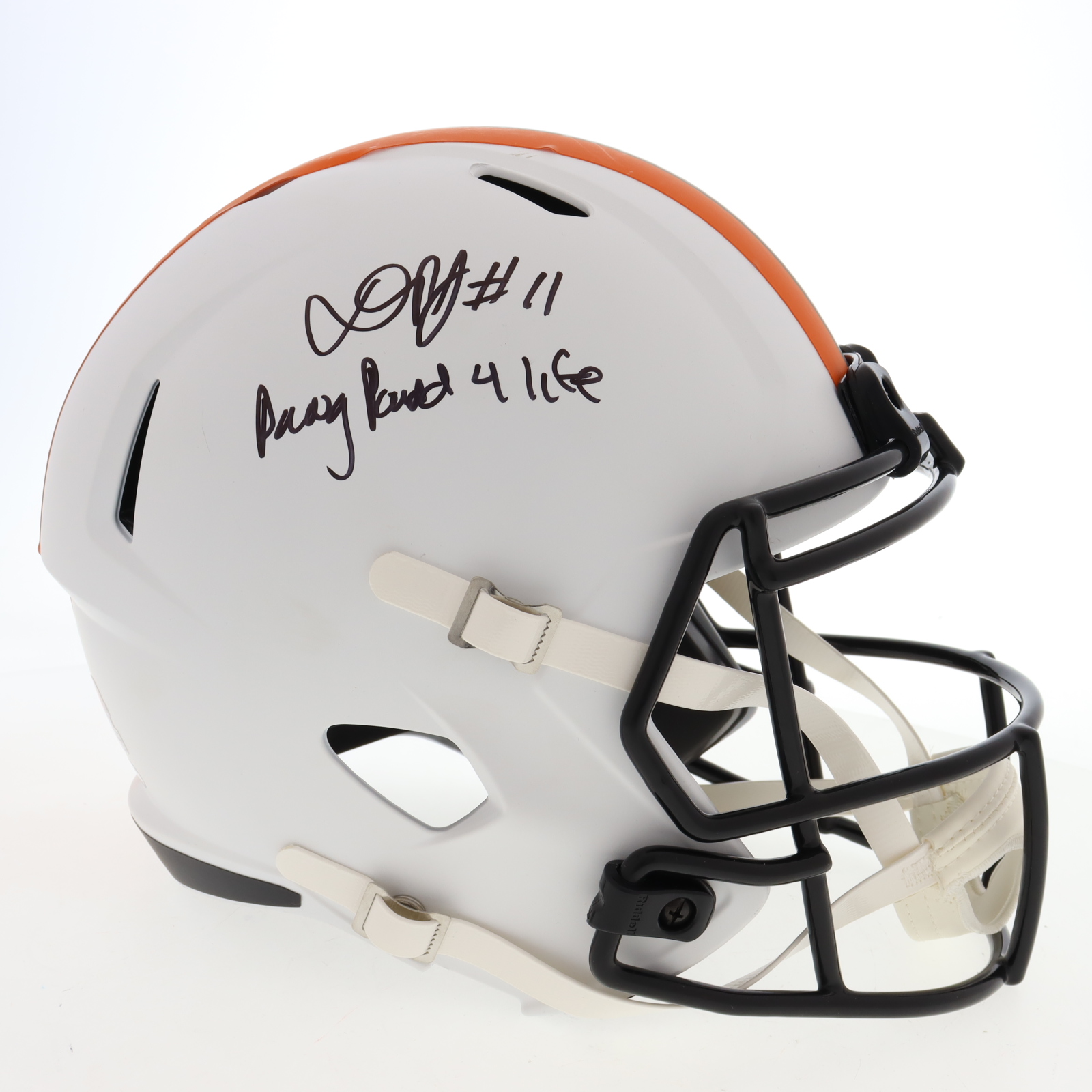 Ridell Cleveland Browns full-size Lunar Eclipse Alternate replica speed helmet hand-signed and inscribed by Donovan Peoples-Jones.
