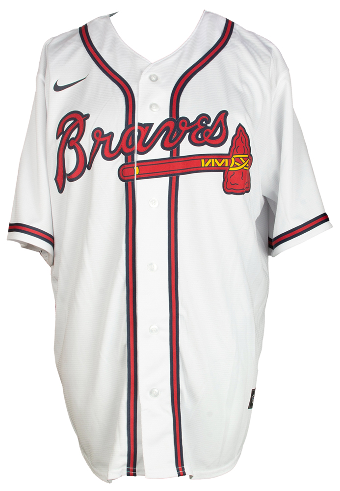Nike style jersey. Everything is sewn on, size XL. Hand-signed and inscribed by Ronald Acuna Jr. (Atlanta Braves).
