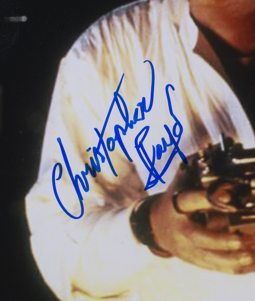 Custom frame measures 24" x 30" in size and features a photo that has been hand-signed by Christopher Lloyd.