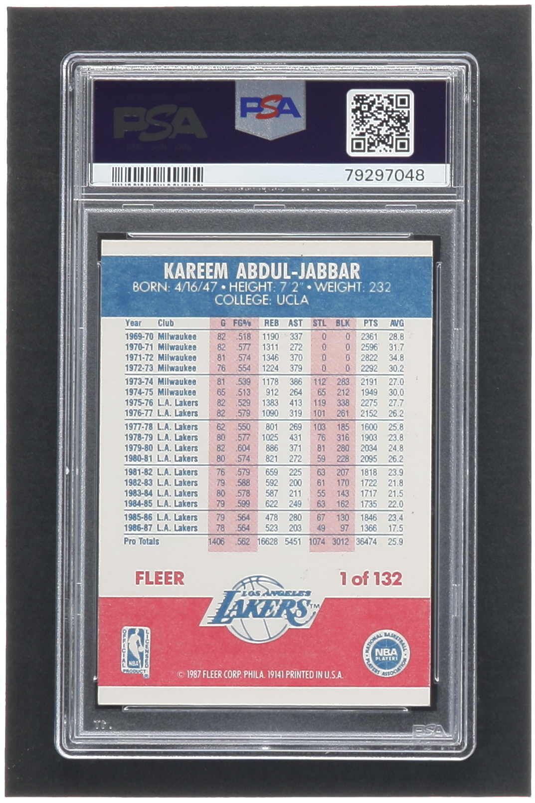 Kareem Abdul-Jabbar 1987-88 Fleer #1 (PSA 7)