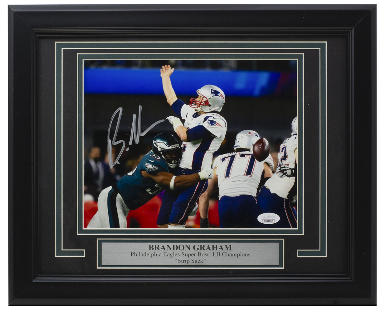 Custom framed display measures 11" x 14" in size and features a photo that has been hand-signed by Brandon Graham (Philadelphia Eagles).