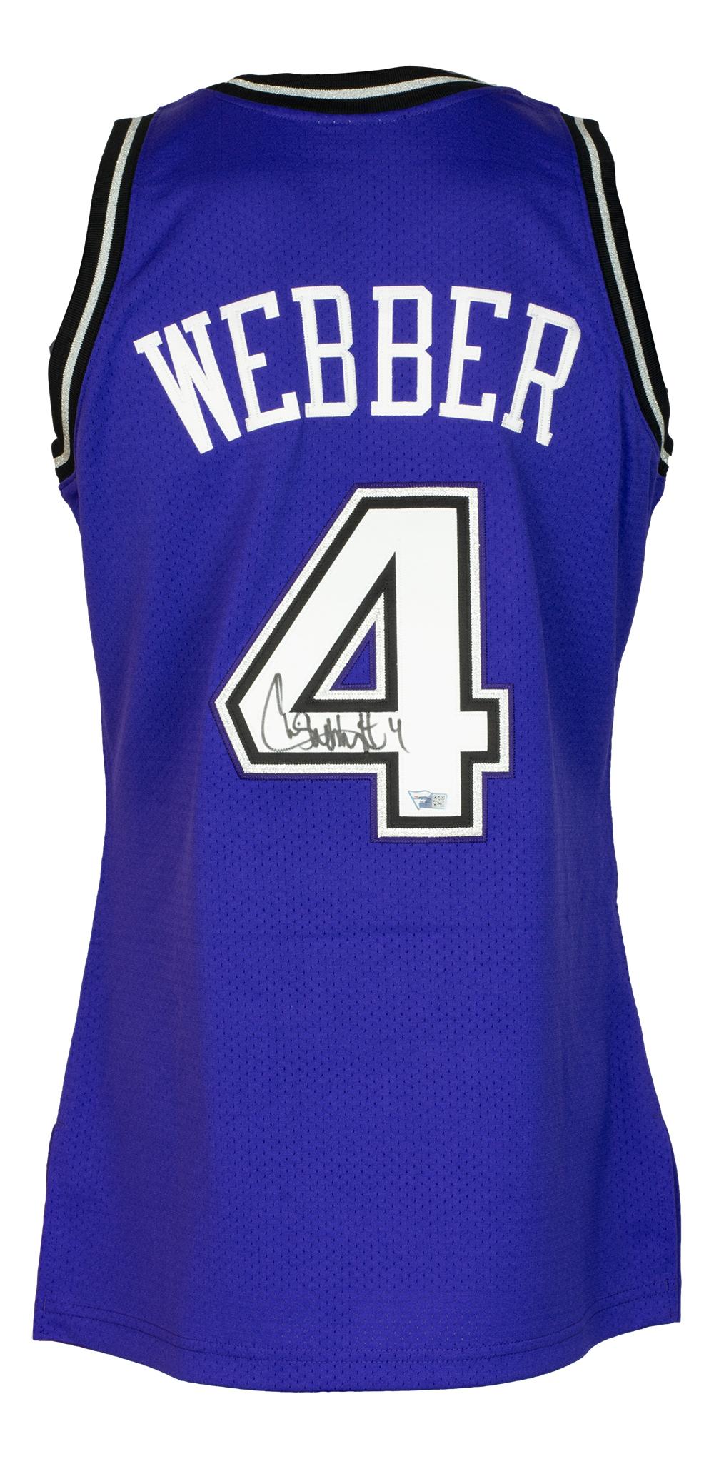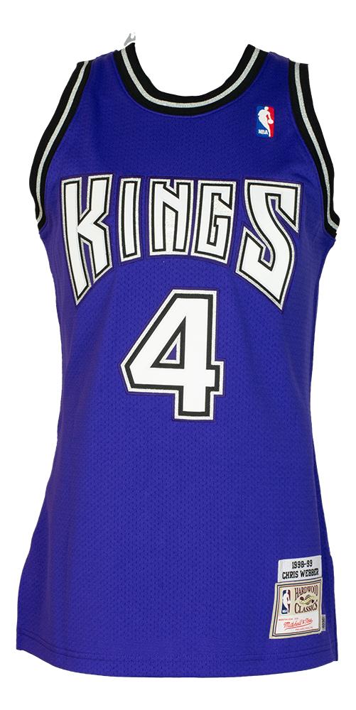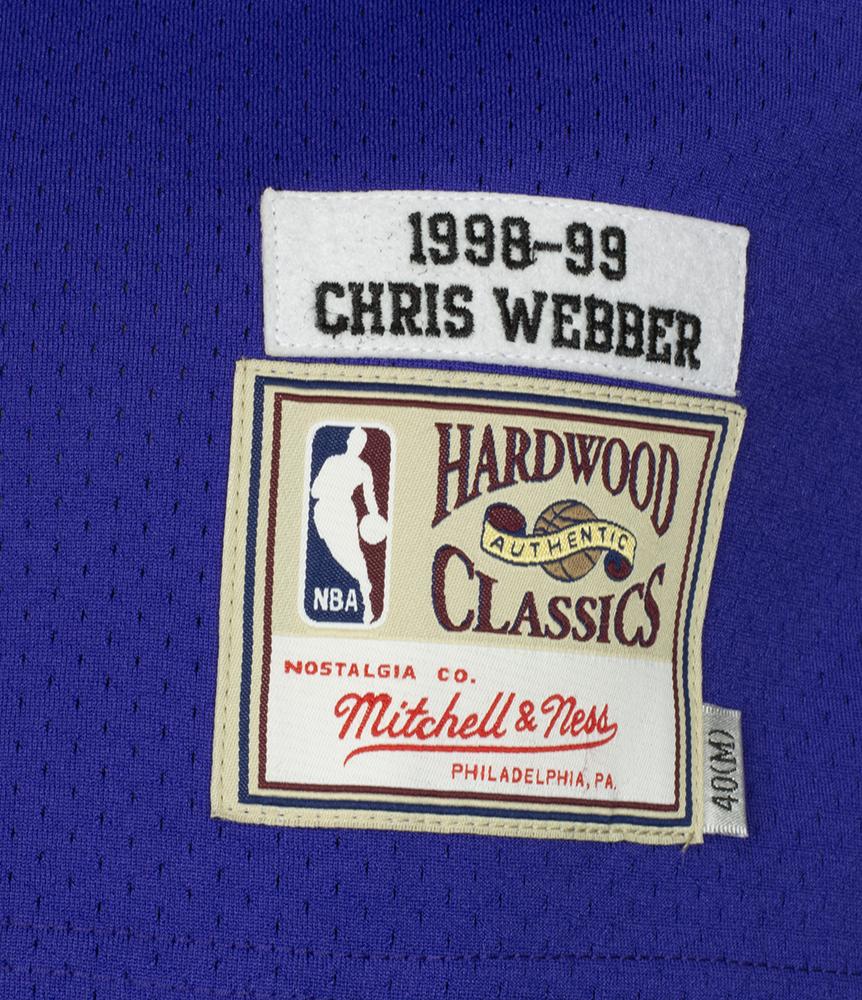Mitchell & Ness style jersey with everything stitched on, size XL. Hand-signed by Chris Webber (Sacramento Kings, HOF).