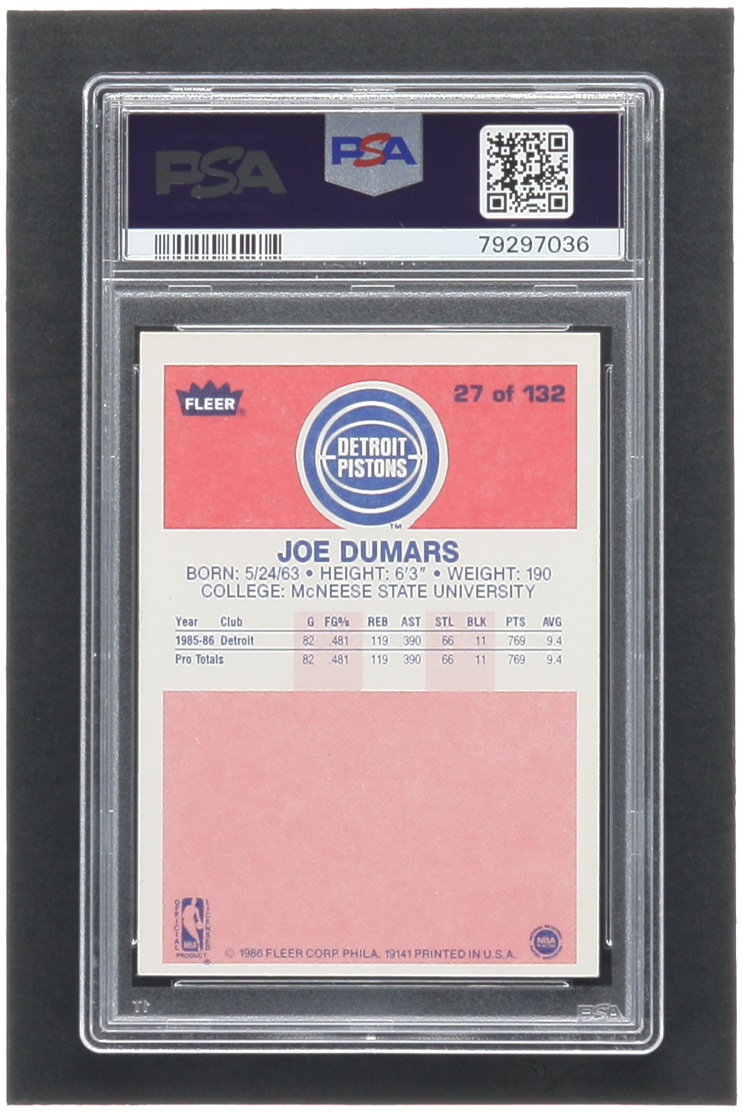 Joe Dumars 1986-87 Fleer #27 RC (PSA 6)