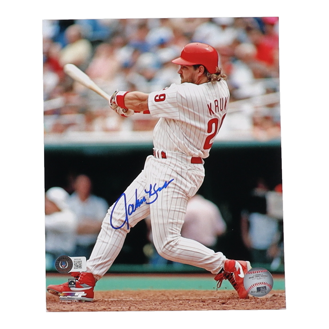Photo measures approximately 8" x 10" in size and has been hand-signed by John Kruk (Philadelphia Phillies).