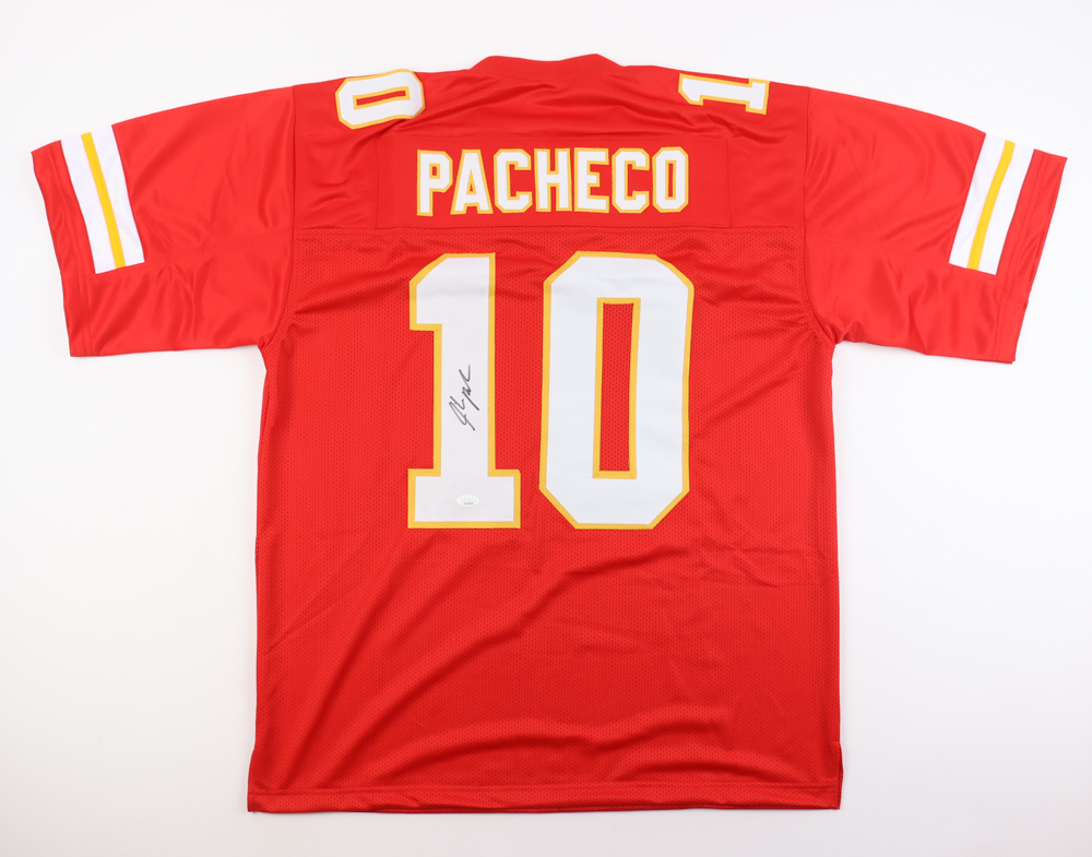 Custom jersey. Everything sewn on, size XL. Hand-signed by Isiah Pacheco.