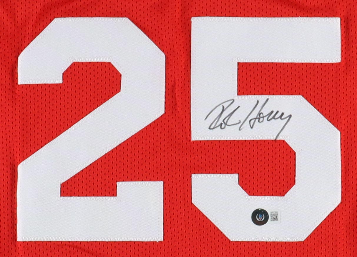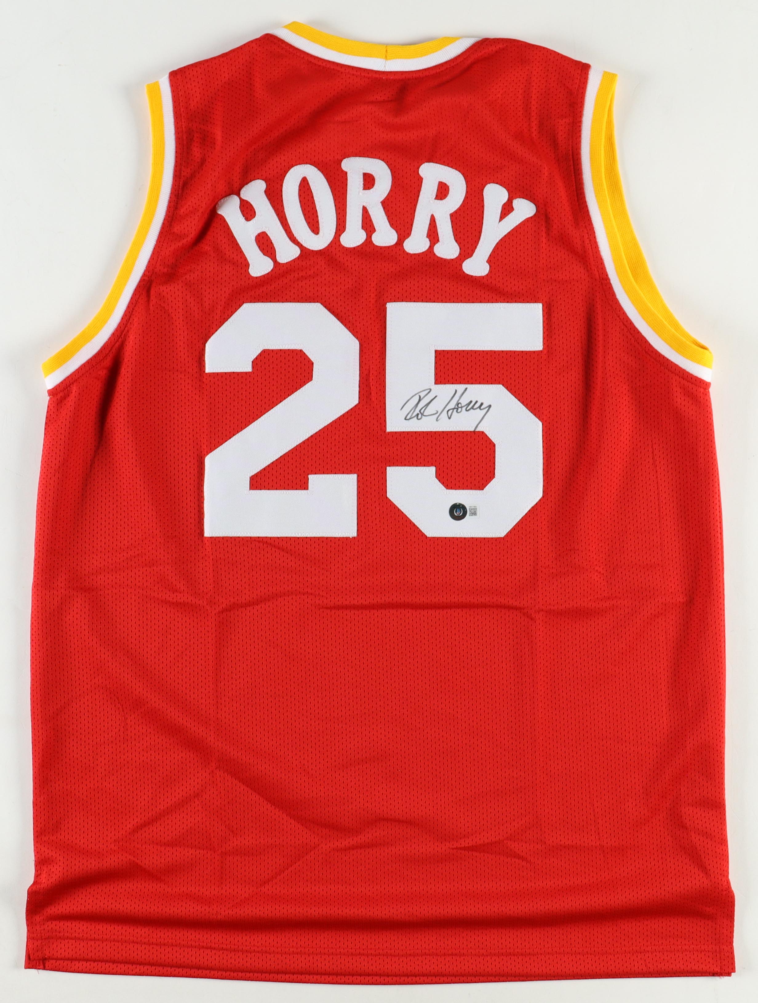 Custom jersey with everything sewn on, size XL. Hand-signed by Robert Horry.